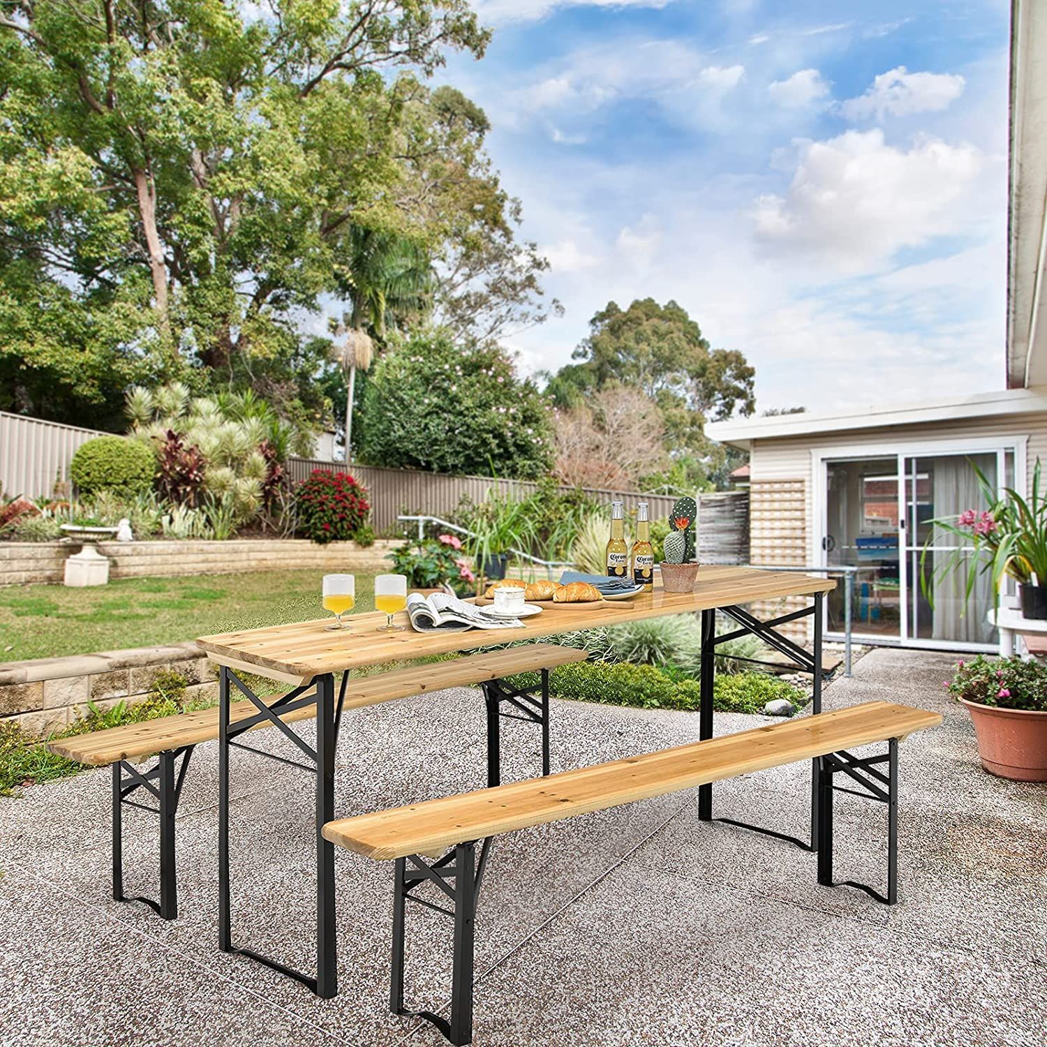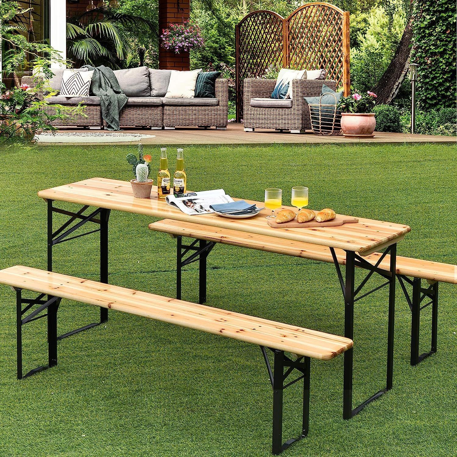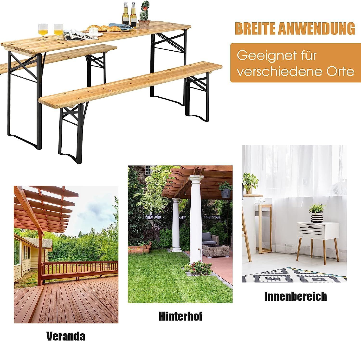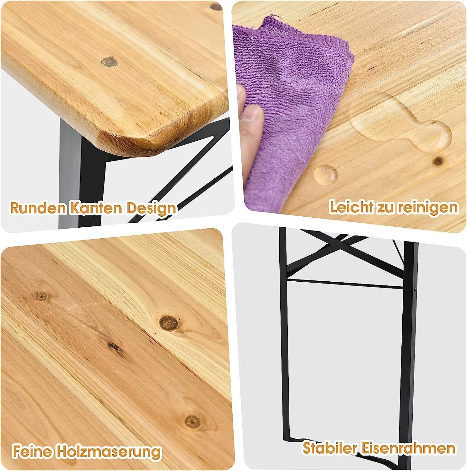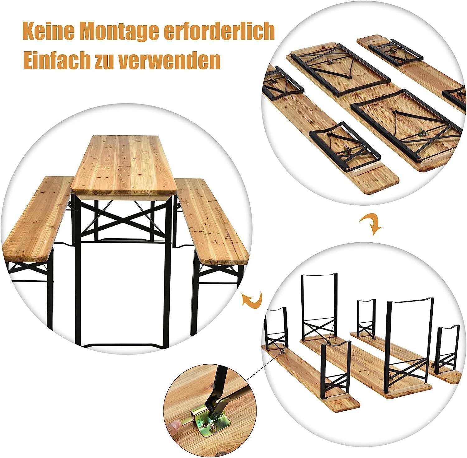 3tlg. Bierzeltgarnitur Picknicktisch mit 2 Sitzbänke, Campingtisch Set Metallrahmen
