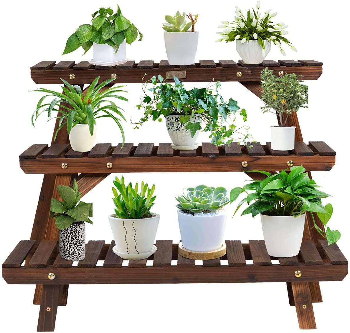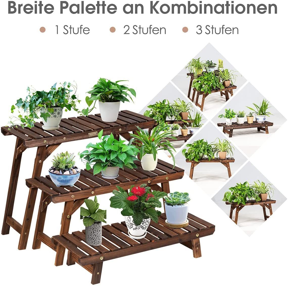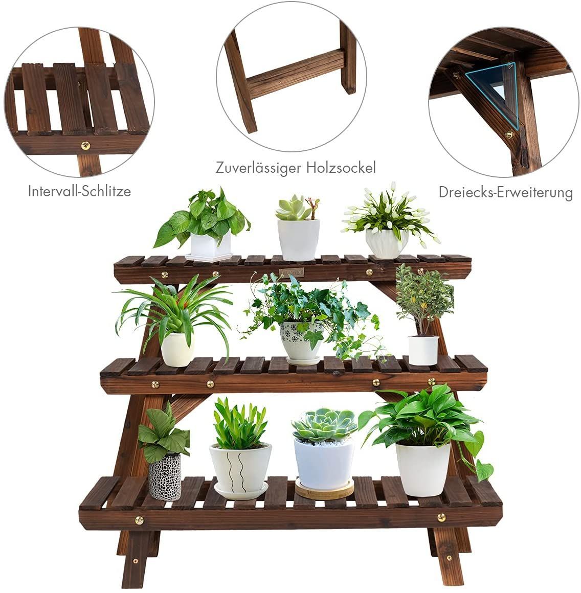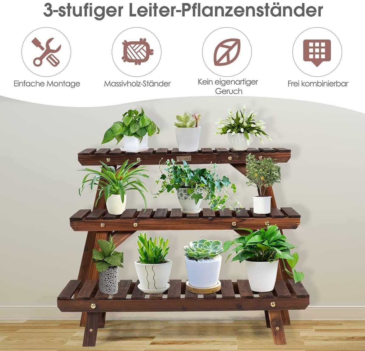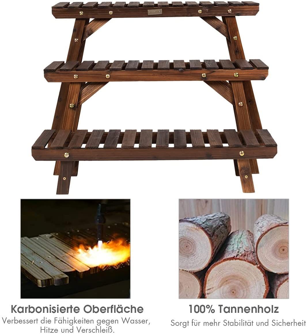 3tlg. Blumenständer Holz Pflanzenregal Blumenregal, Blumentreppe Garten Holzregal