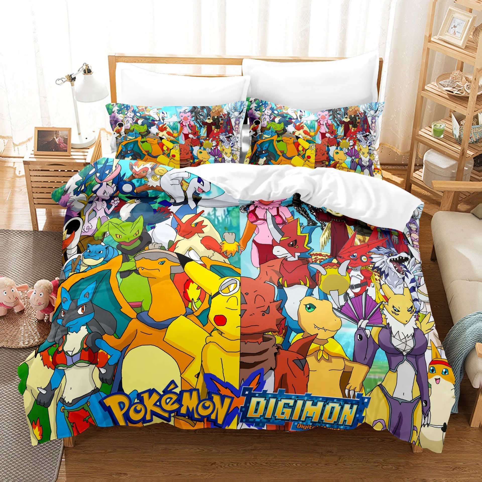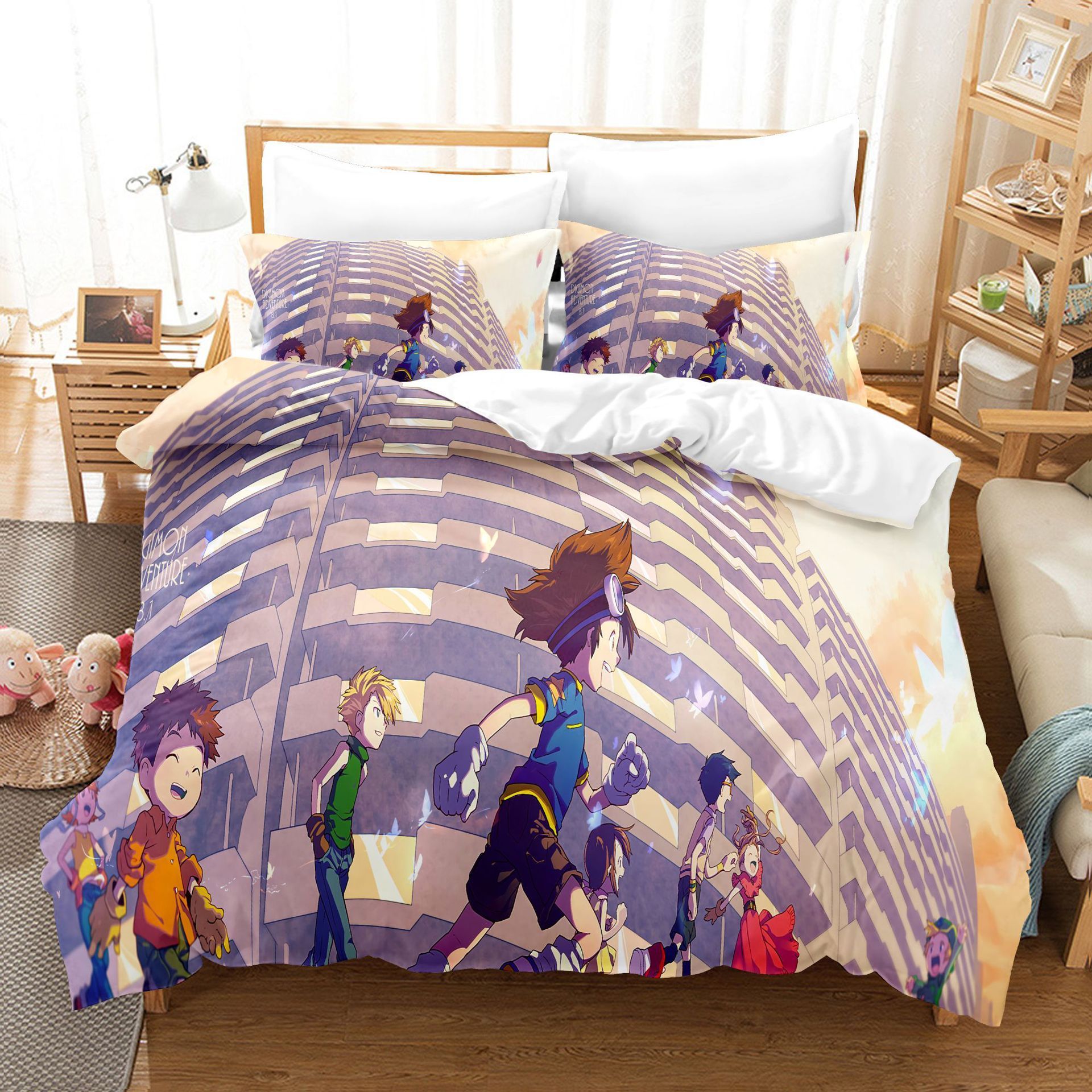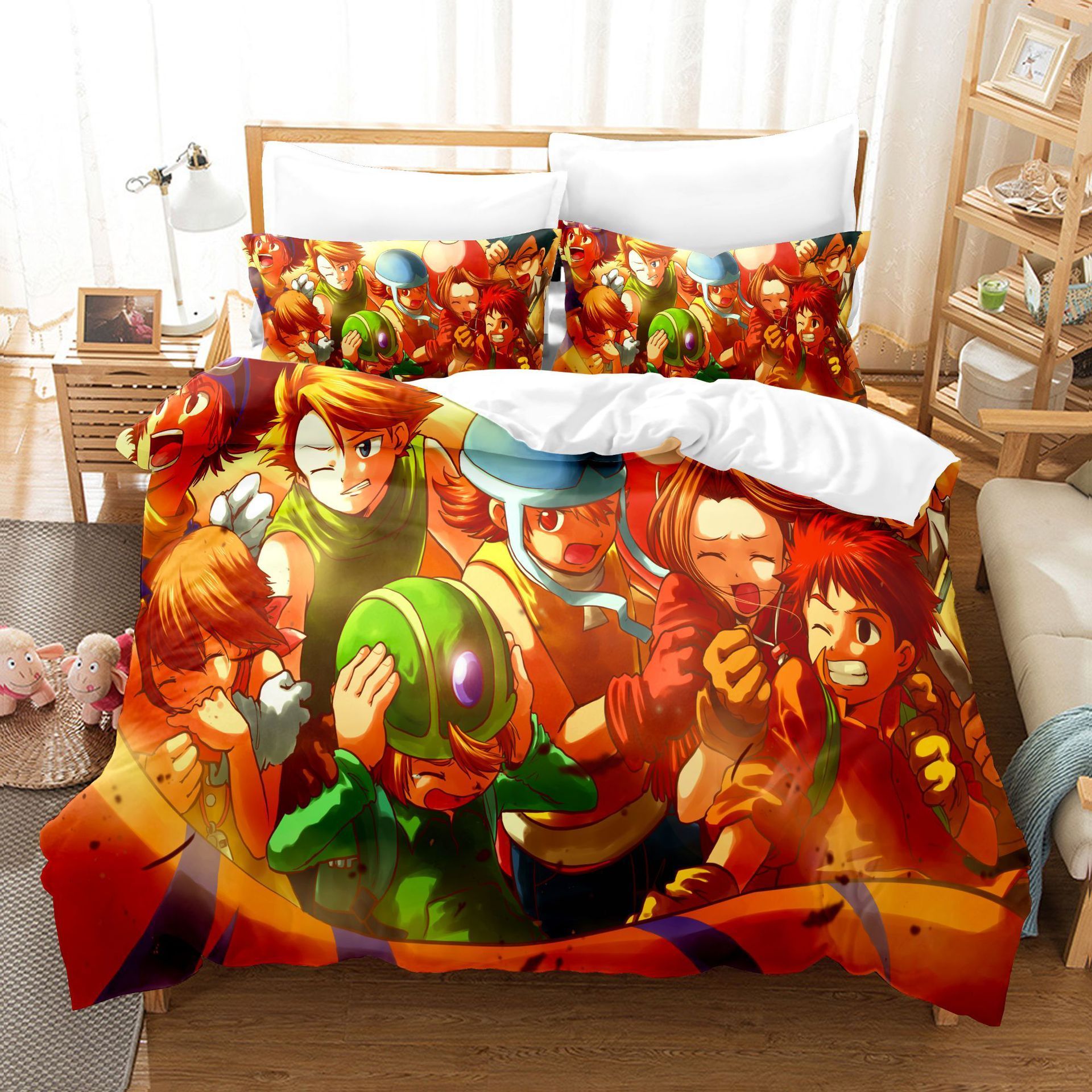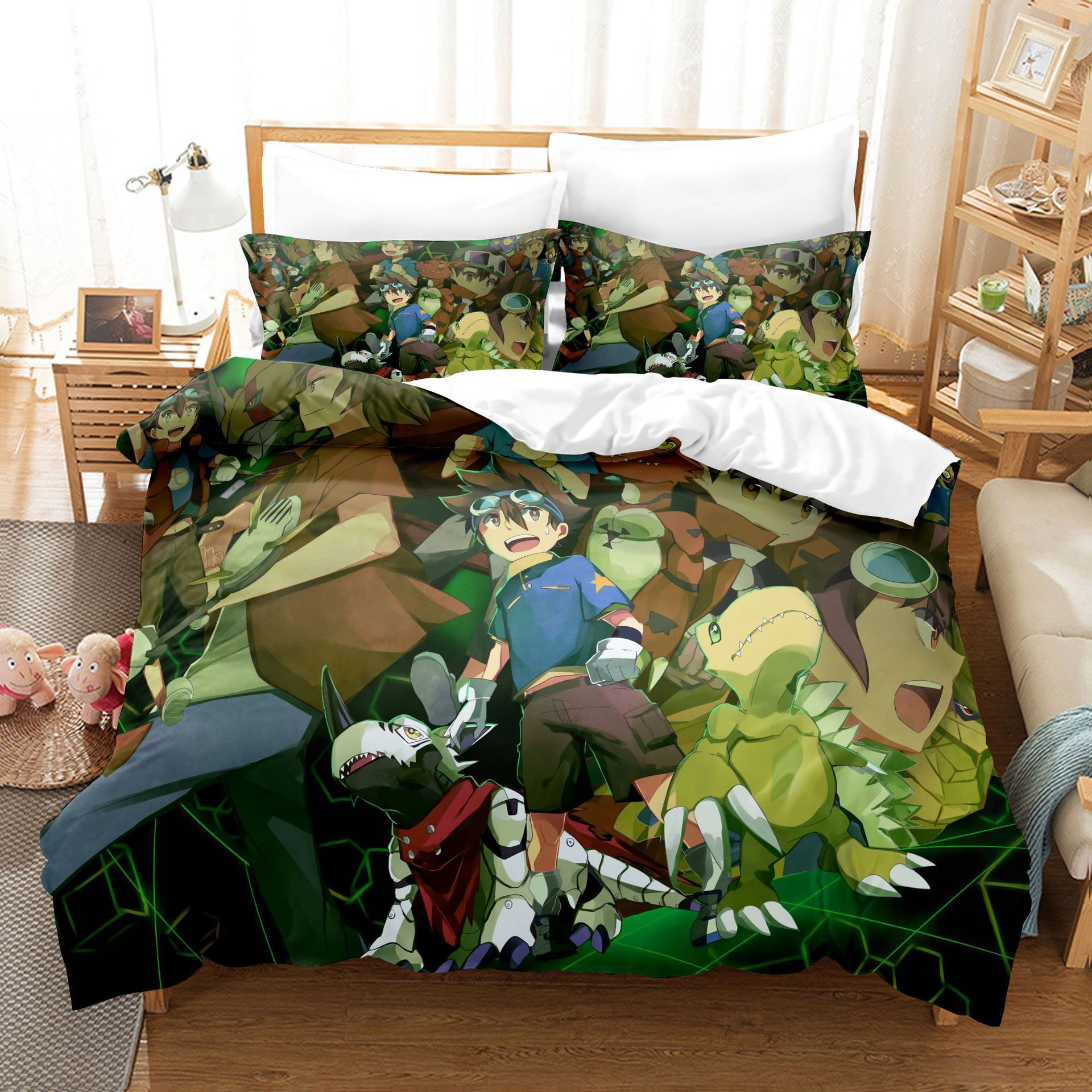 3tlg. Digimon Adventure 3D Druck Bettbezug Set Kinder Bettwäsche Kissenbezug