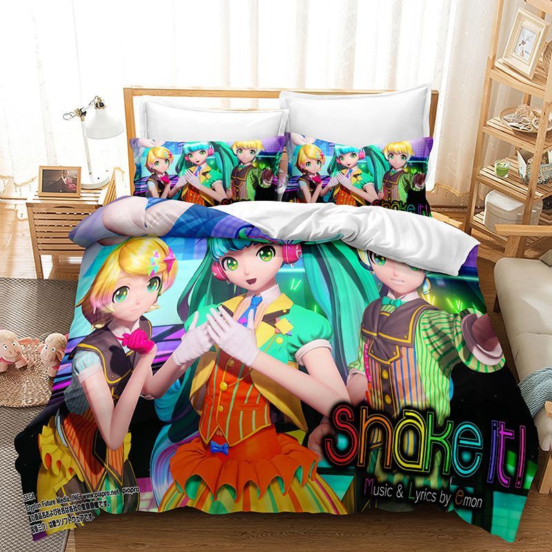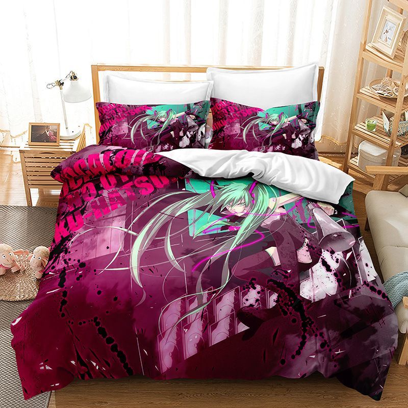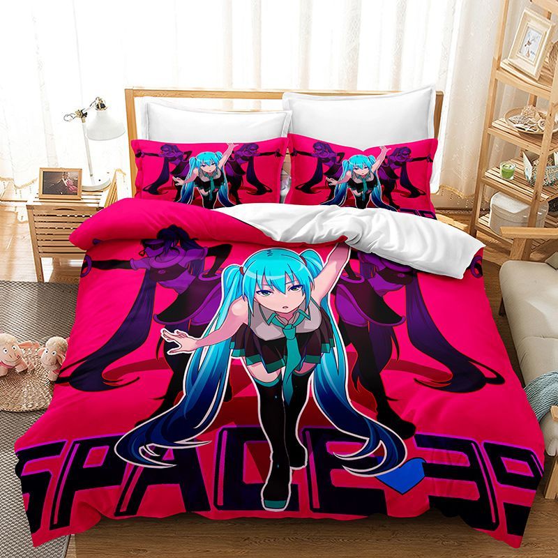 3tlg. Hatsune Miku 3D Druck Bettbezug Set Kinder Bettwäsche Kissenbezug Geschenk