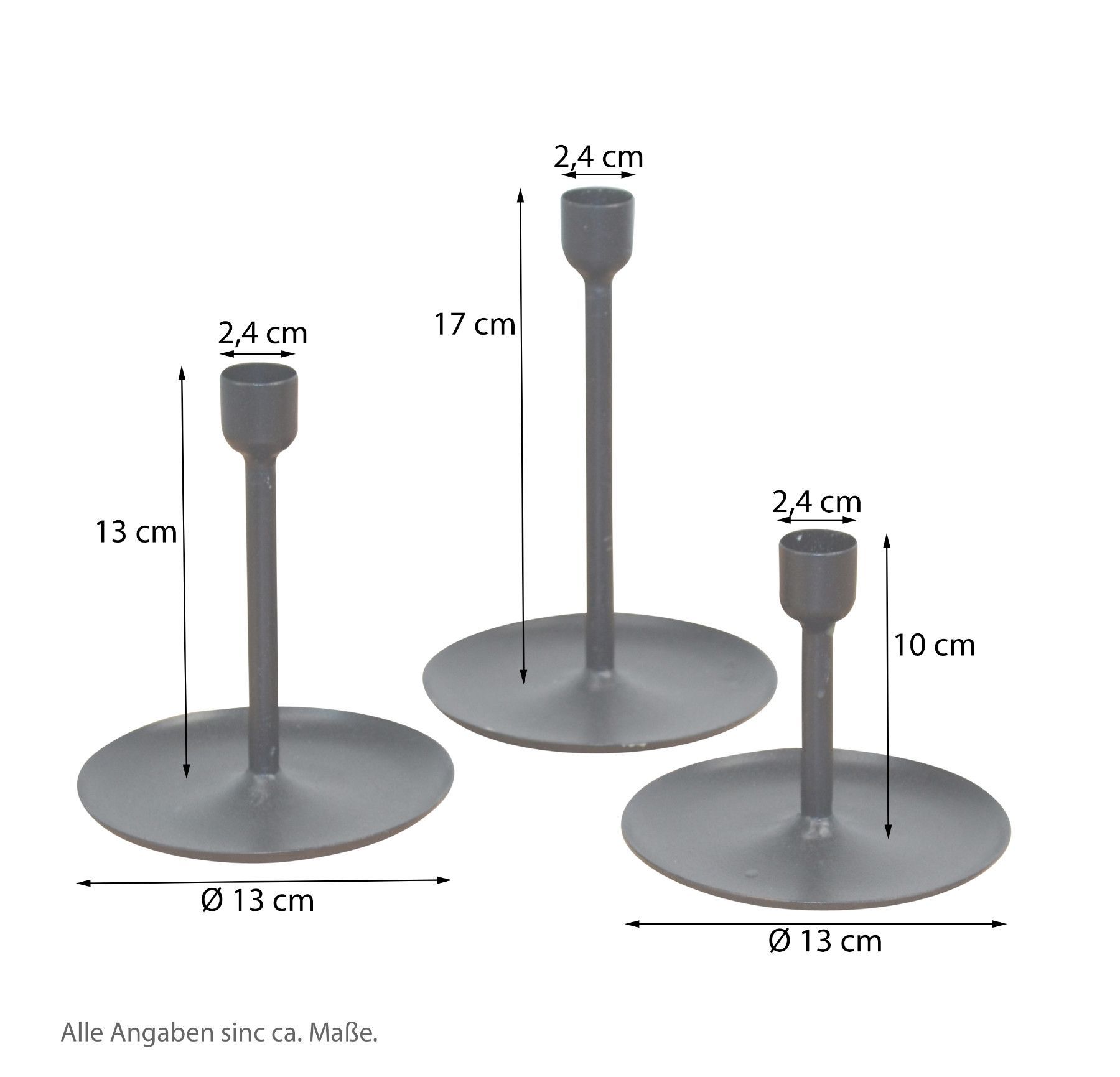 3tlg. Kerzenständer-Set, schwarz aus Metall