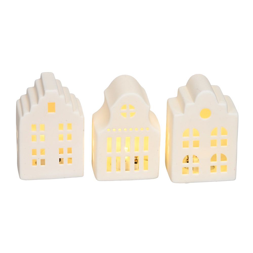 3tlg. Lichterhaus MICHEL weiß aus Porzellan LED beleuchtetes Dekohaus (3 Motive)