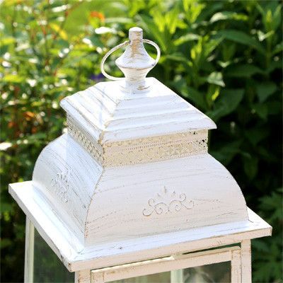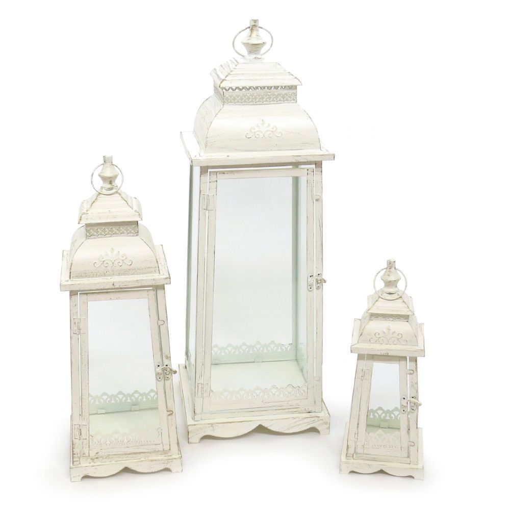 3tlg. Set Laterne LUGANO creme weiß antik aus Metall Ornament verziert