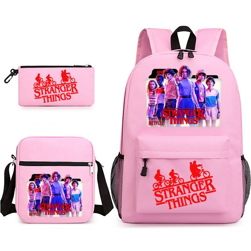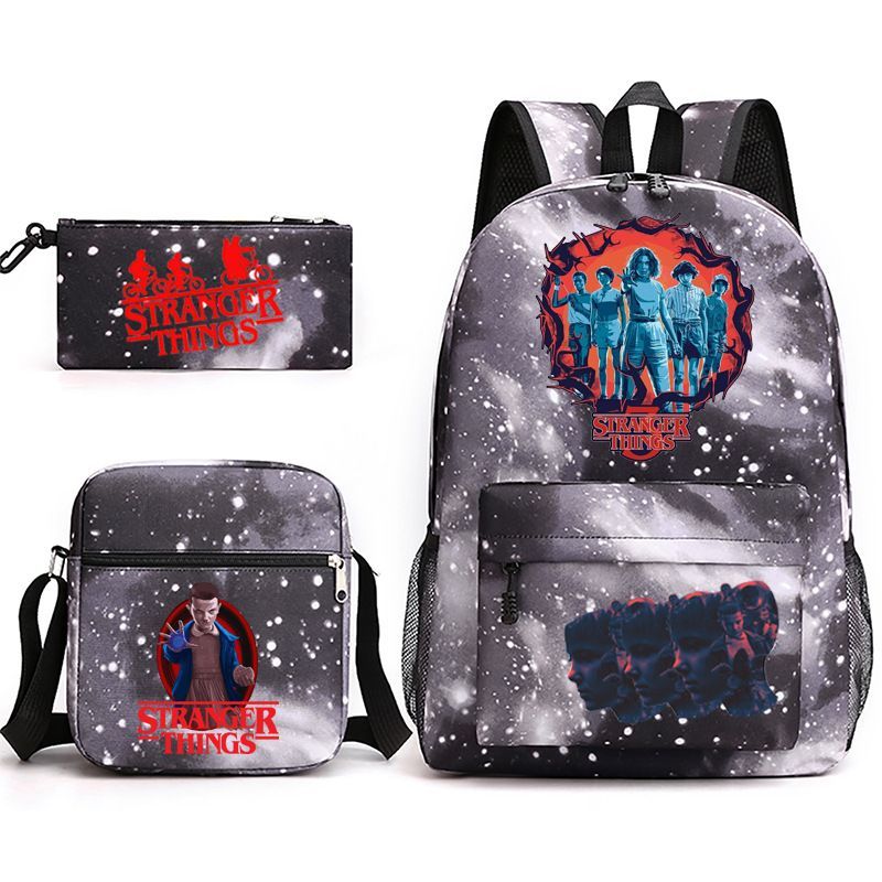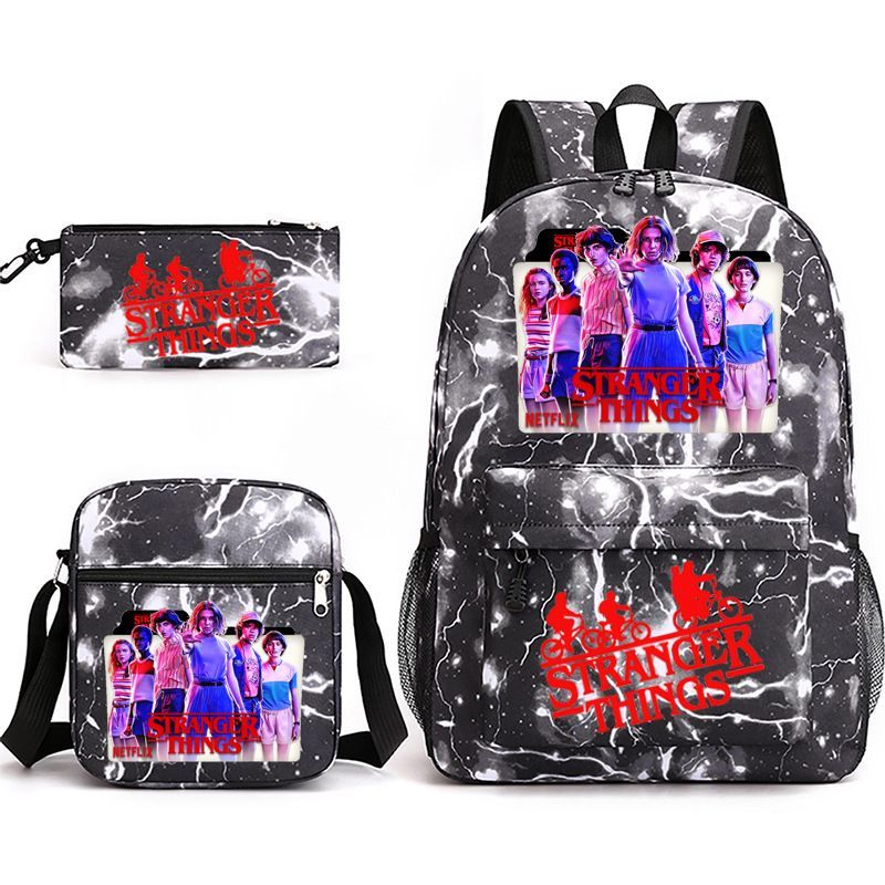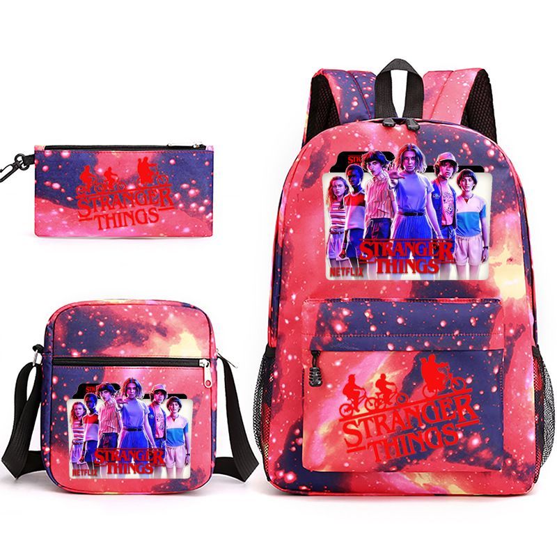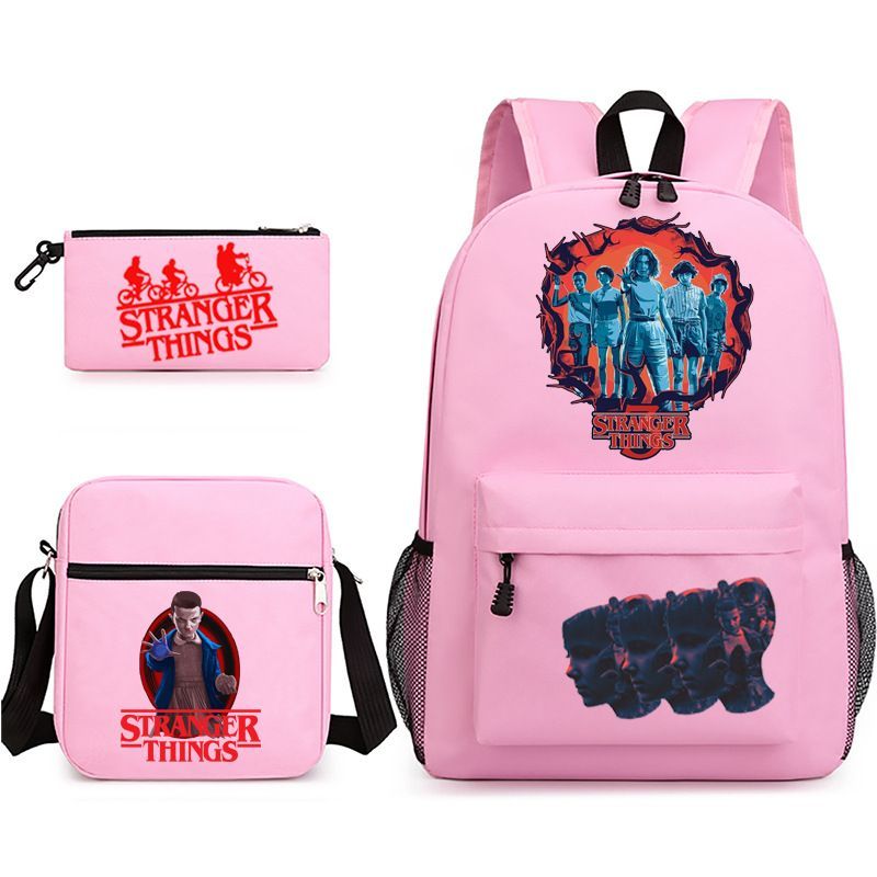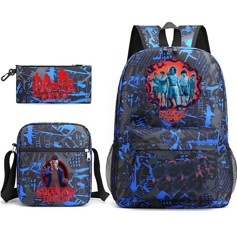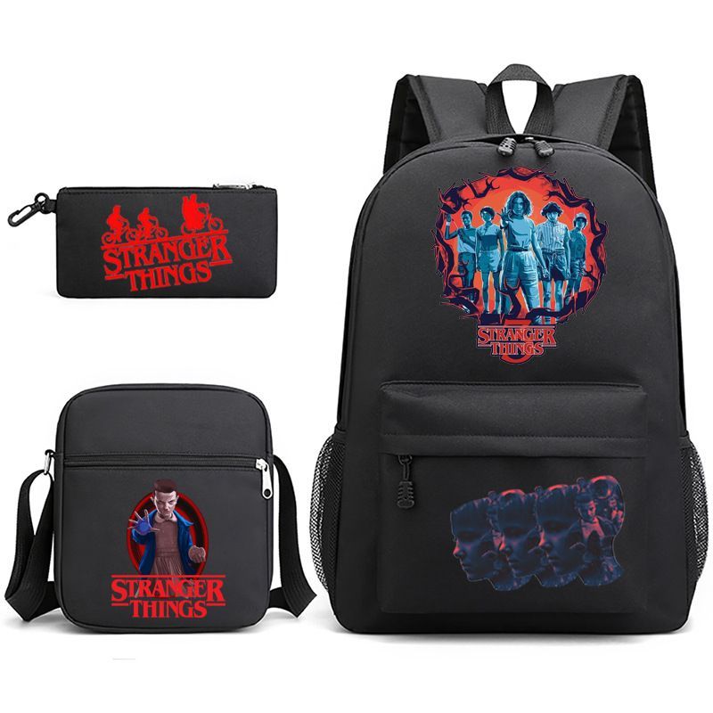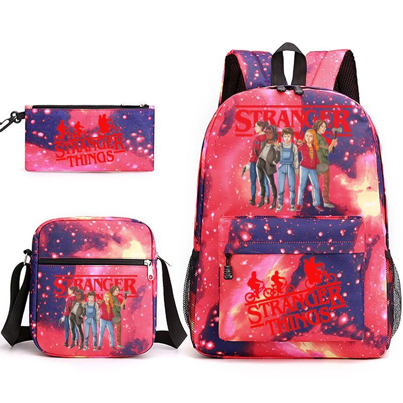 3tlg. Stranger Things Rucksack Joyce Eleven Damen Backpack Vintage Schultasche