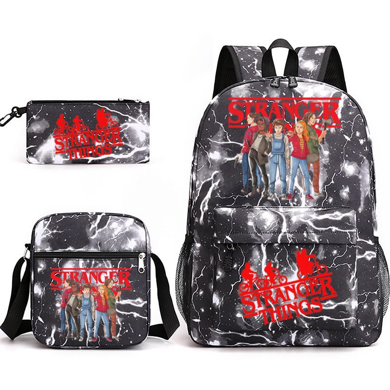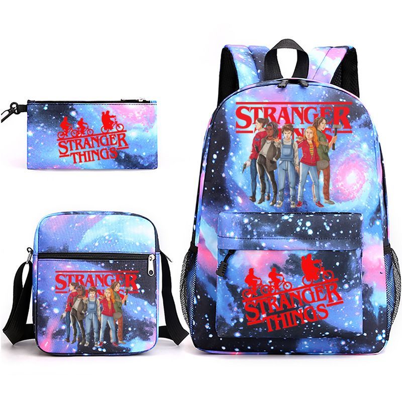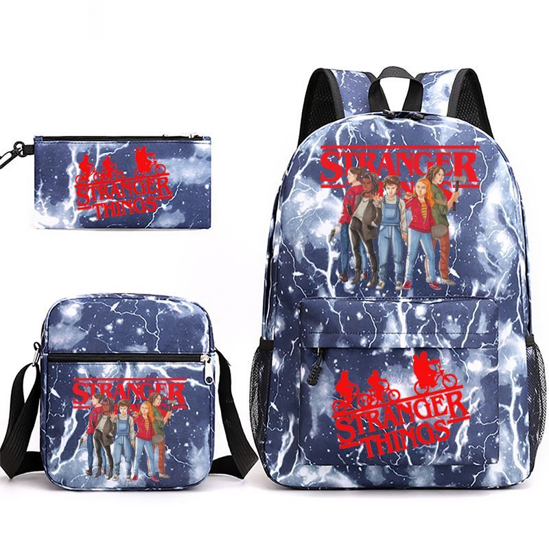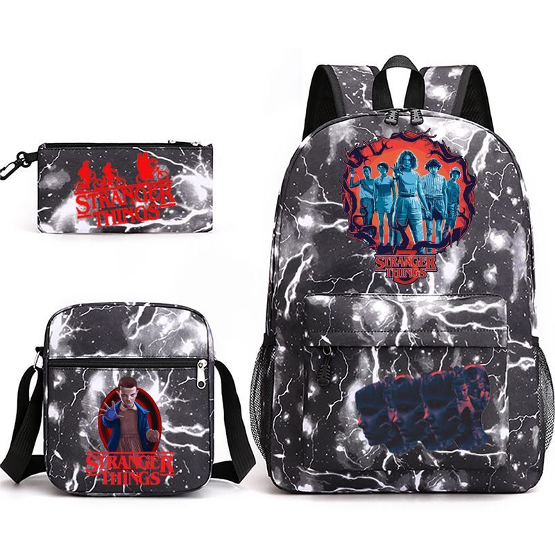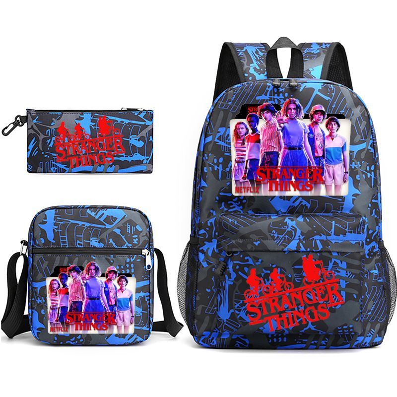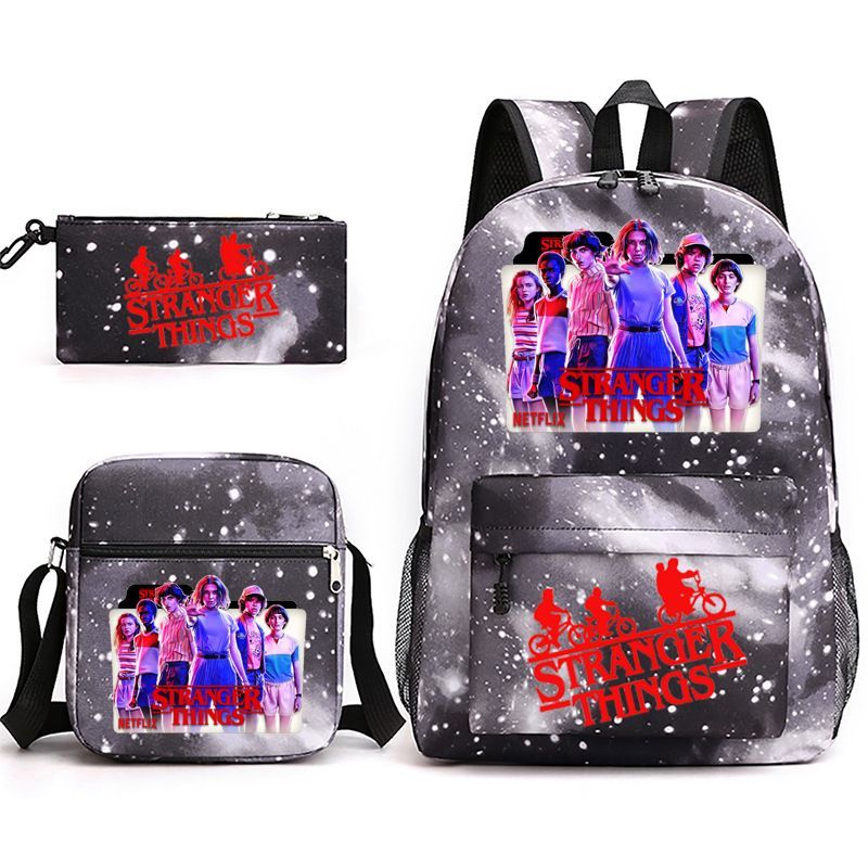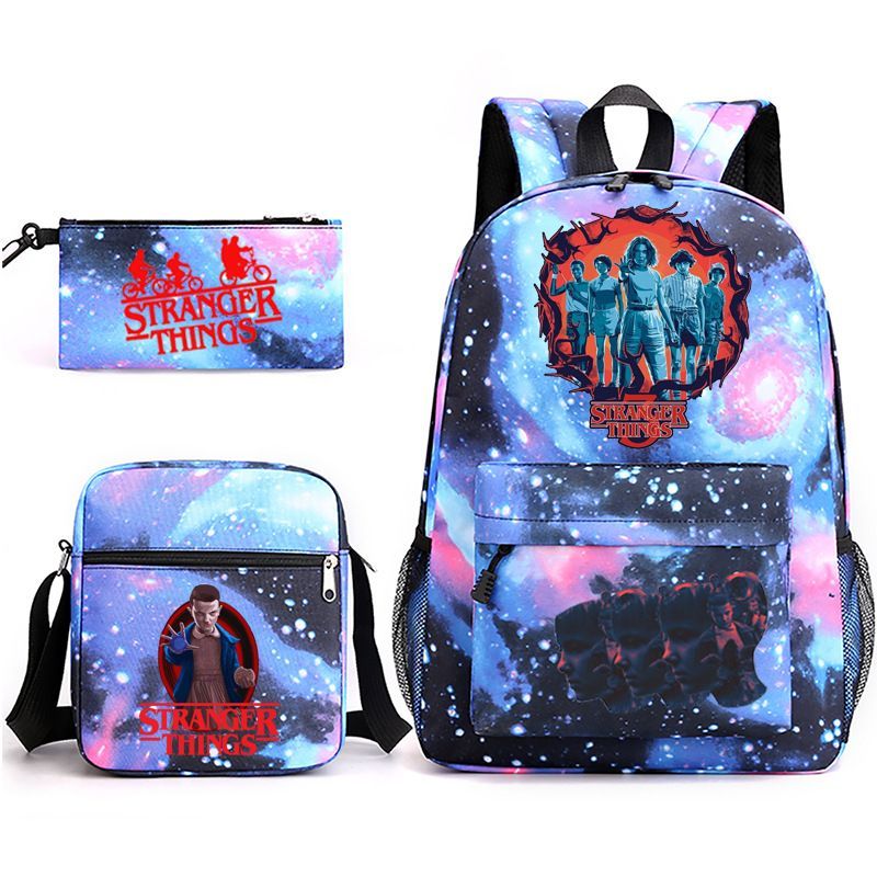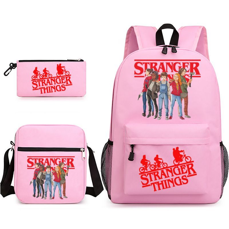 3tlg. Stranger Things Rucksack Joyce Eleven Damen Backpack Vintage Schultasche
