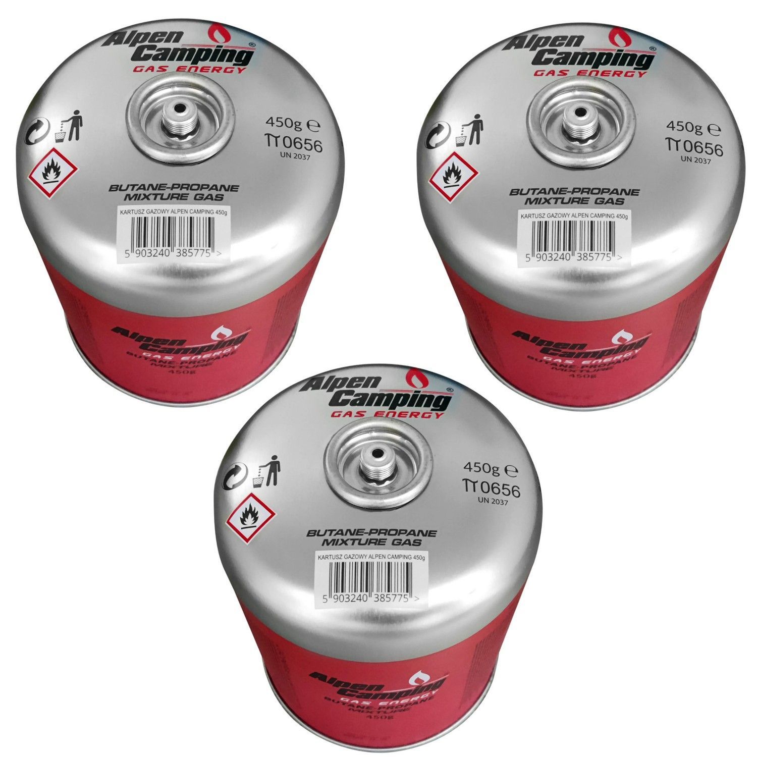 3x 450g Alpen Camping Gaskartusche für Kocher