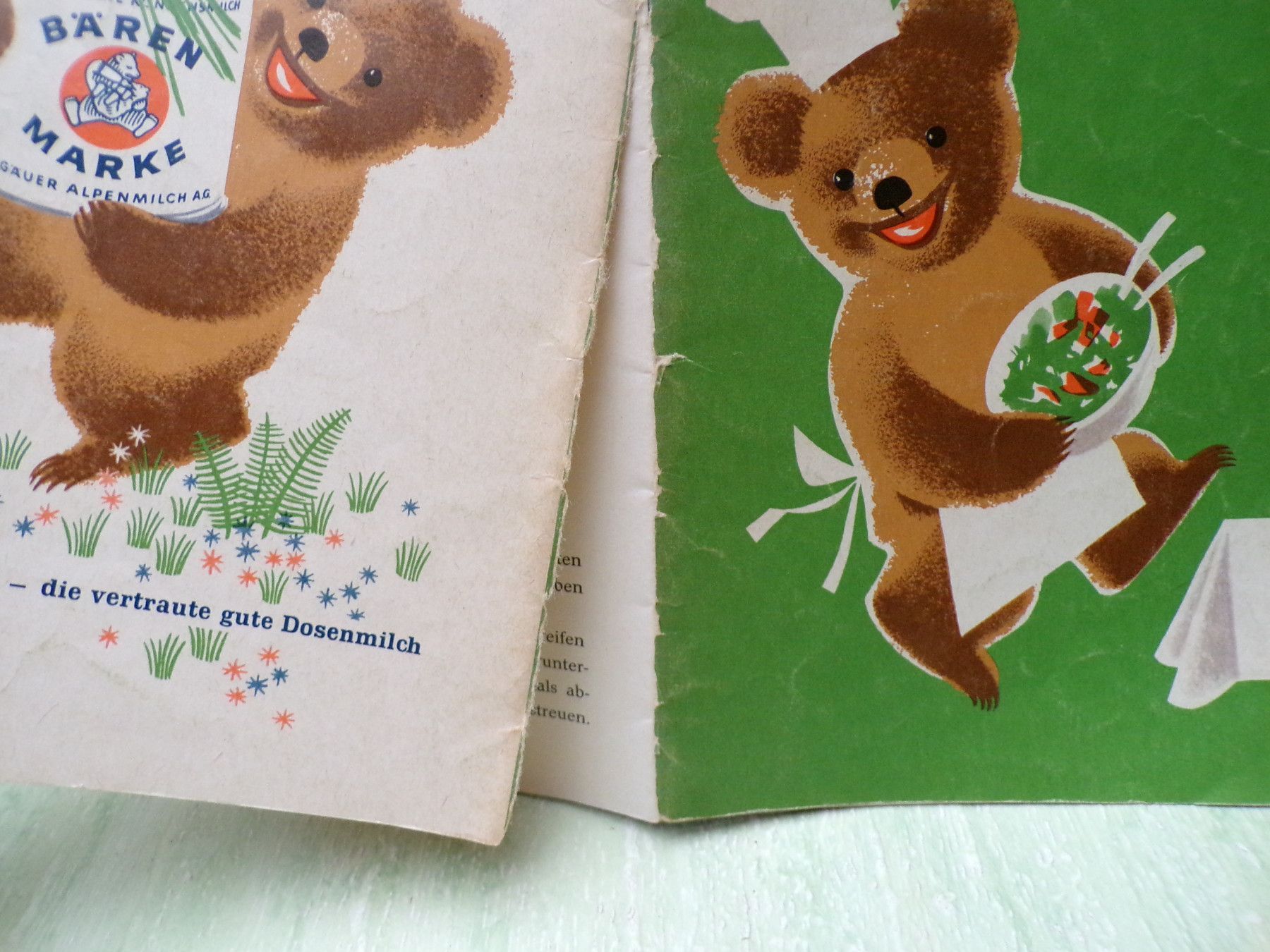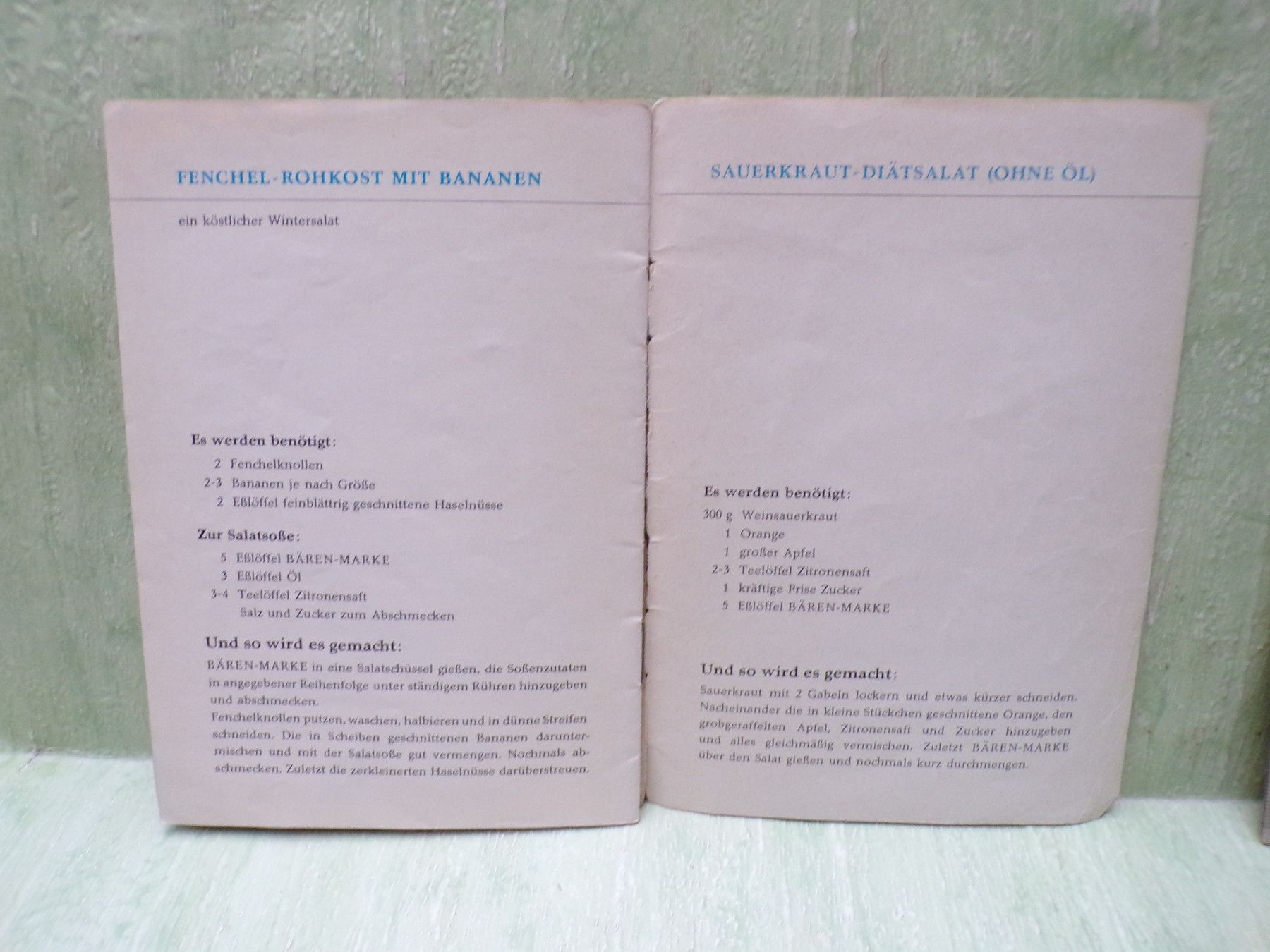3x Bären-Marke feinen Salaten Vorspeisen Milch-Mixgetränke Werbehefte Bärenmarke