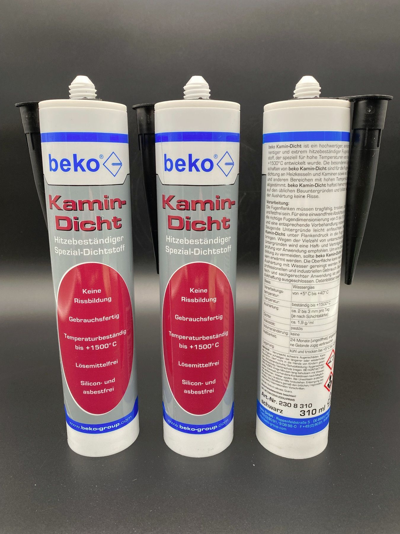 beko 3x beko Kamin Dicht 310ml schwarz hitzebeständige Dichtmasse bis 1500 °C