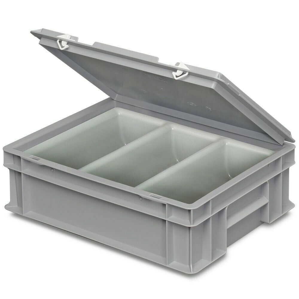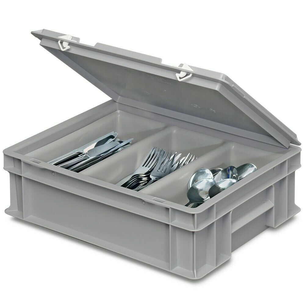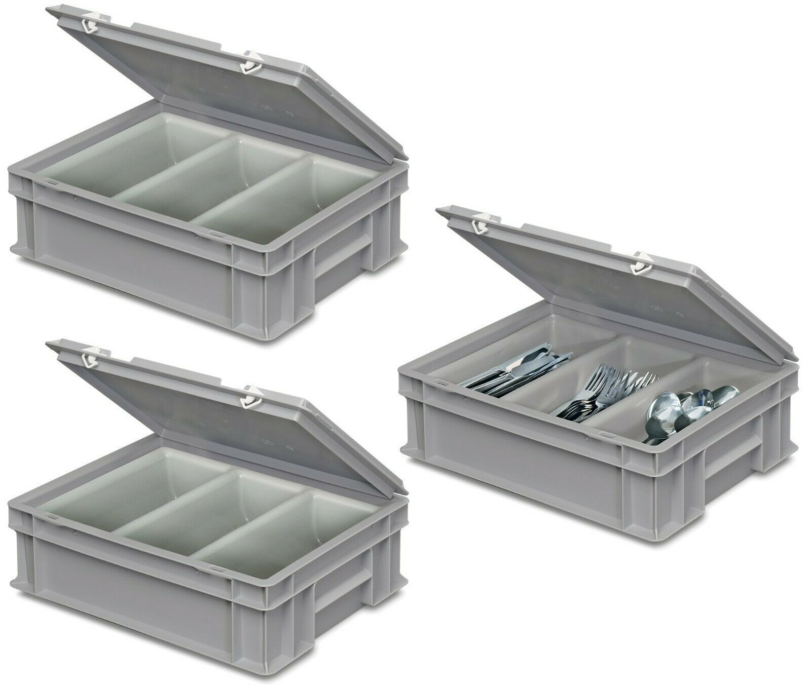 3x Besteckkasten mit 3-Mulden Besteckeinsatz, LxBxH 400x300x130 mm, grau