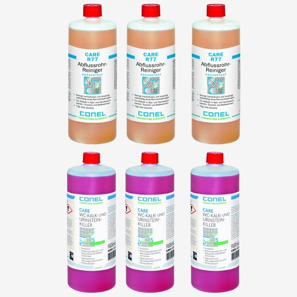 3x Conel Care Abflussrohr Reiniger + 3x CONEL CARE WC-Kalk-/ Urinsteinkiller 1 L.