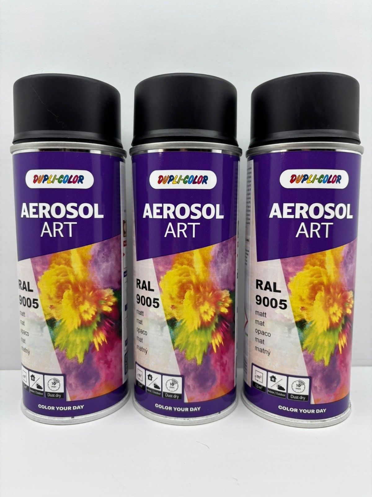 3x DUPLI COLOR Aerosol Art Lackspray RAL 9005 Tiefschwarz matt Schwarz 400ml