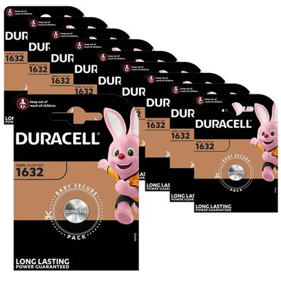 • 10x Duracell DL1632 CR 1632 3V Lithium Batterie Knopfzelle im Blister