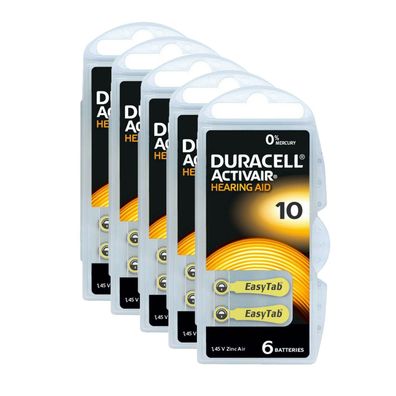 • 5x Duracell 10 Hörgerätebatterien Batterien Knopfzellen 1,45V Activair 6er Blister