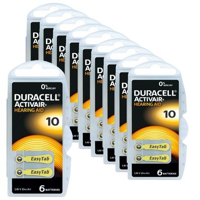 • 10x Duracell 10 Hörgerätebatterien Batterien Knopfzellen 1,45V Activair 6er Blister
