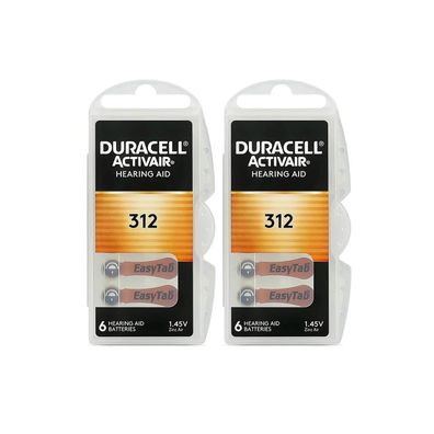 • 2x Duracell Batterien 312 Hörgerätebatterien Zinc Air 1,45V Activair 6er Blister