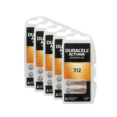 • 5x Duracell Batterien 312 Hörgerätebatterien Zinc Air 1,45V Activair 6er Blister