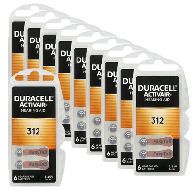 • 10x Duracell Batterien 312 Hörgerätebatterien Zinc Air 1,45V Activair 6er Blister