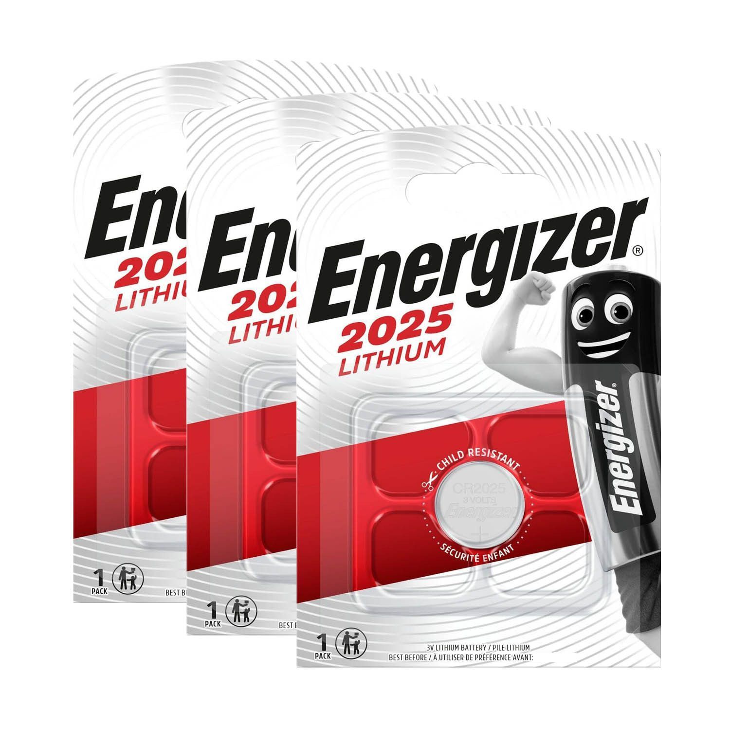 Energizer 3x Energizer CR 2025 CR2025 3V Batterie Lithium Knopfzelle DL2025 im Blister 170mAh