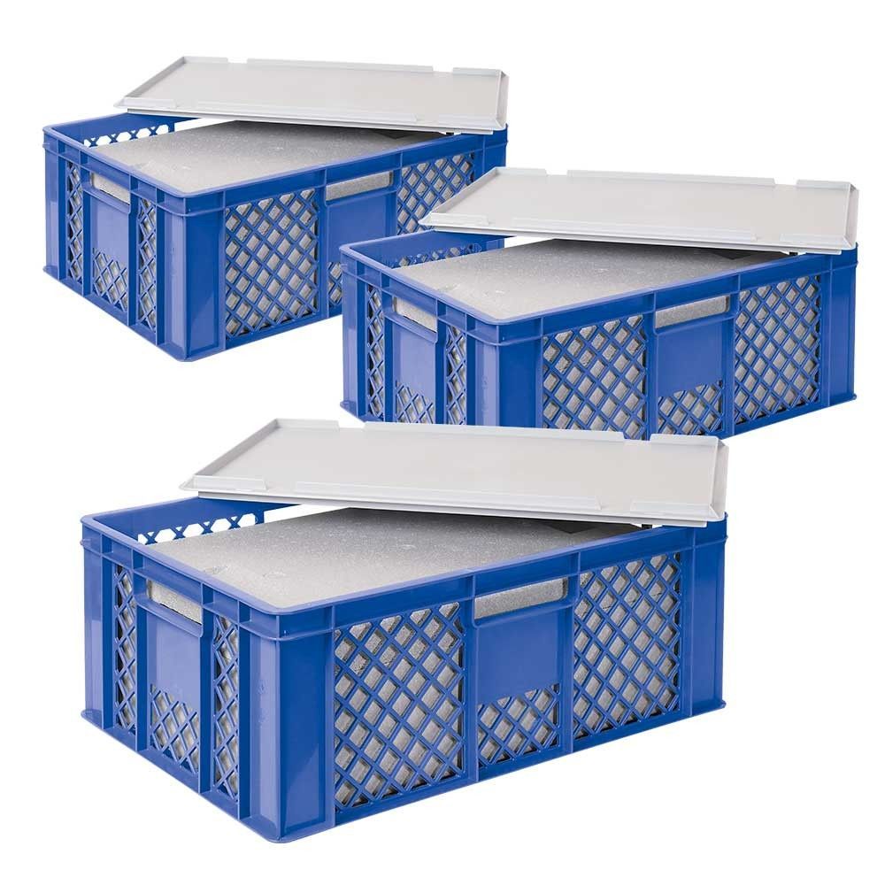 3x EPS Thermobox in Stapelkorb mit Deckel, LxBxH 600x400x240 mm, blau