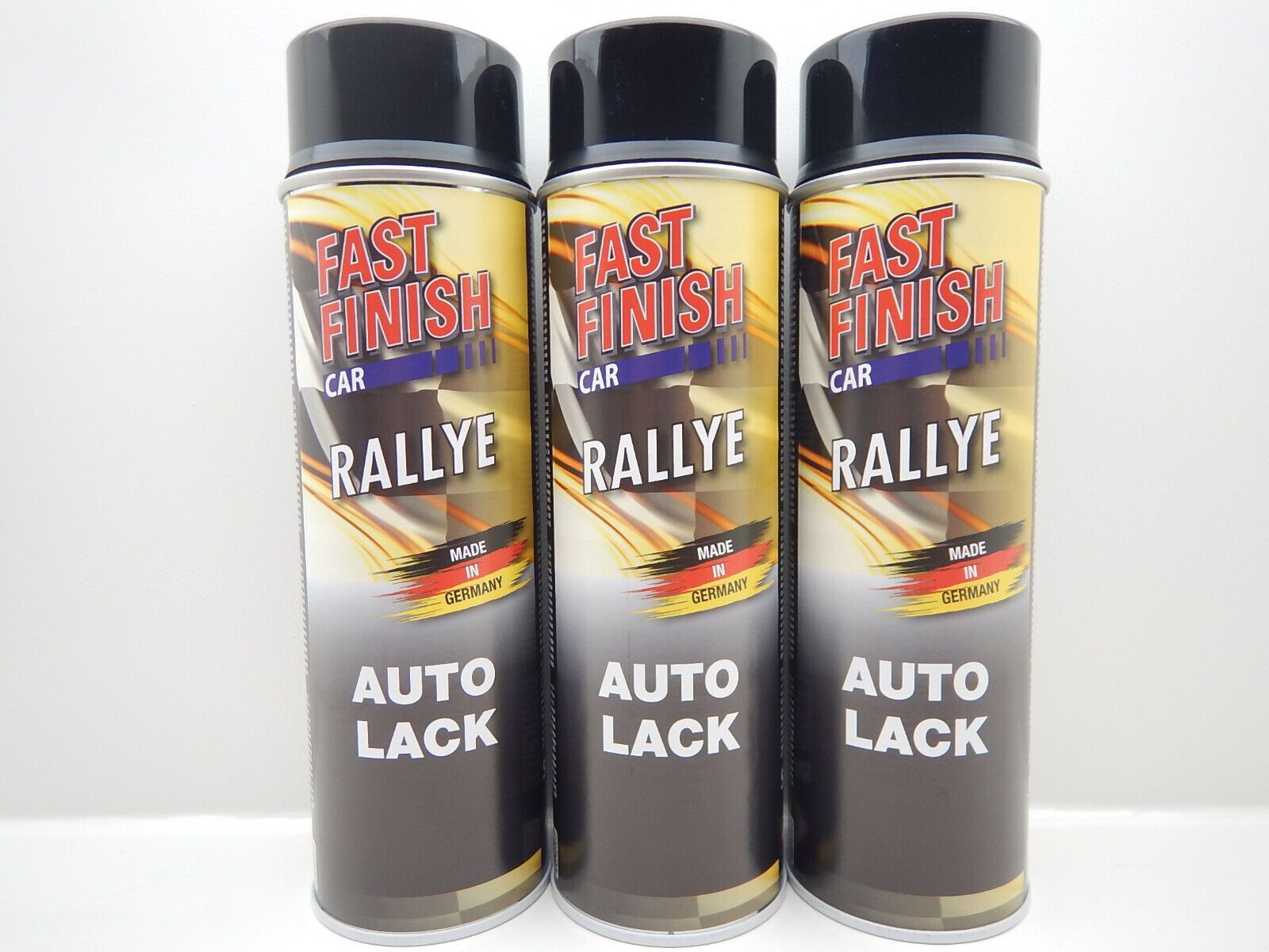3x FAST FINISH CAR RALLYE Schwarz Glänzend Autolack LACK KFZ Lackspray 500ml