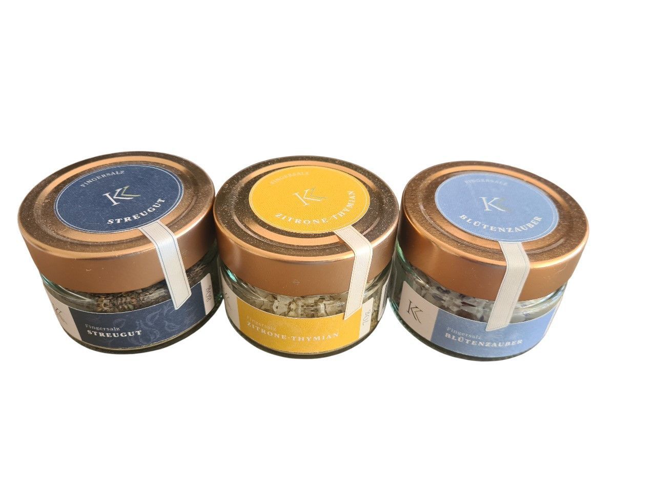 Fingersalz Streugut im Glas 70g Fingersalz Sale Profumato im Glas 70g Fingersalz Blütenzauber im Glas 70g