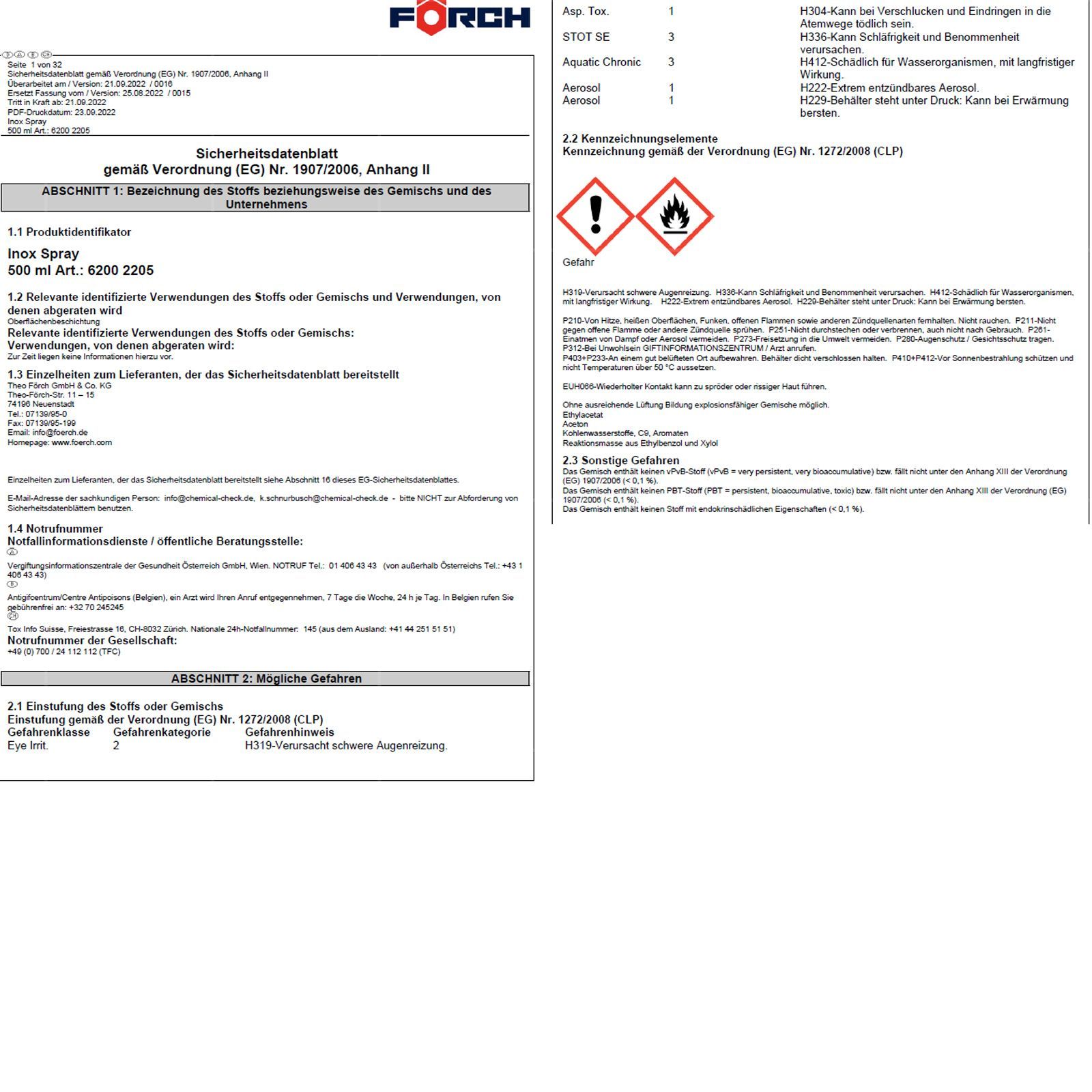 3x FOERCH INOX SPRAY L234 0.5 LTR Edelstahlspray Schweißspray