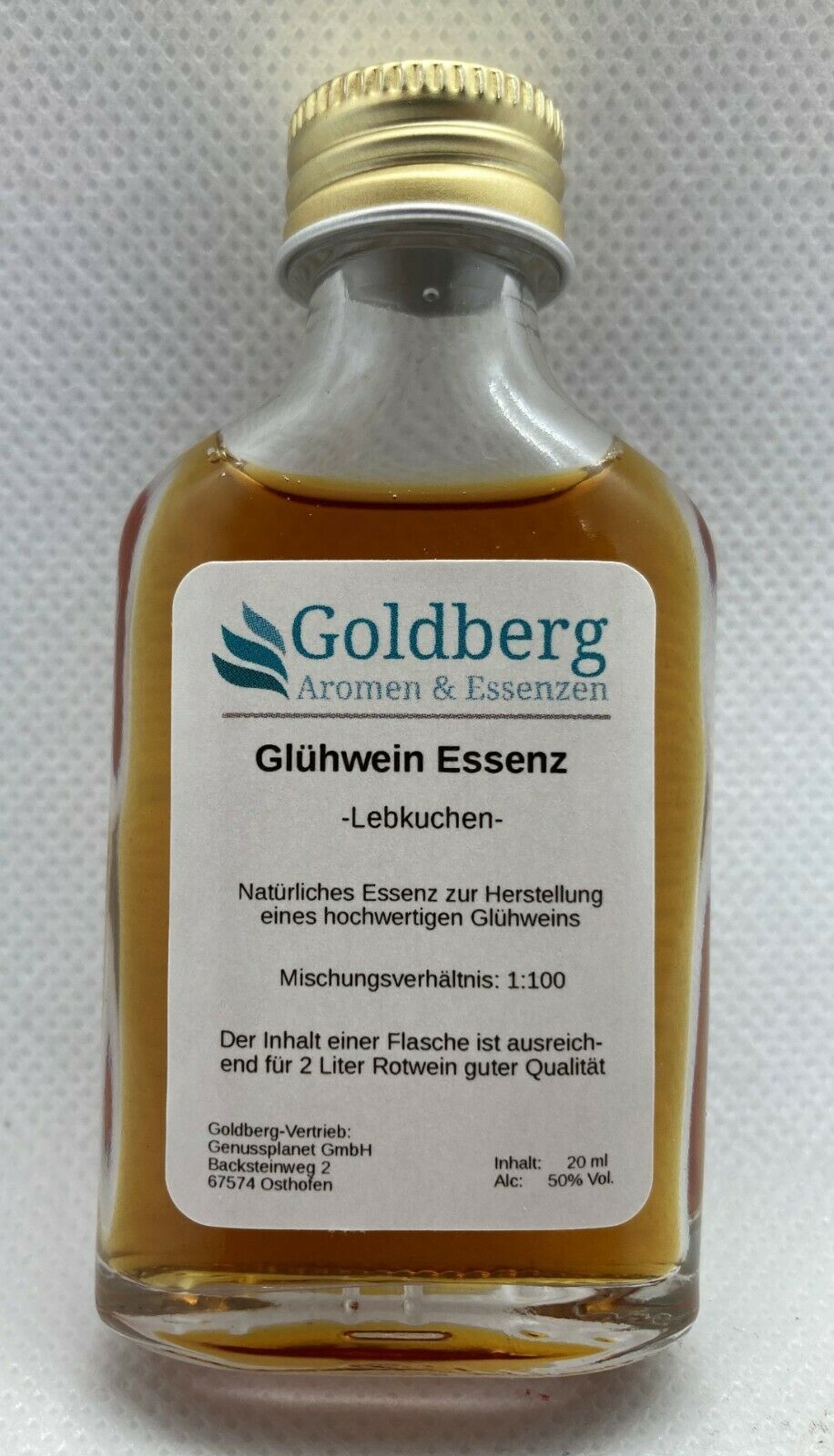 machhtml Goldberg Aromen & Essenzen ________________________________________________________________ Glühwein-Essenz -Lebkuchen- Natürliches Essenz zur Herstellung eines sehr guten Glühweins mit den Aromen von Lebkuchen Mischungsverhältnis: 1:100 Der Inhalt einer Flasche ist ausreichend für 2 Liter