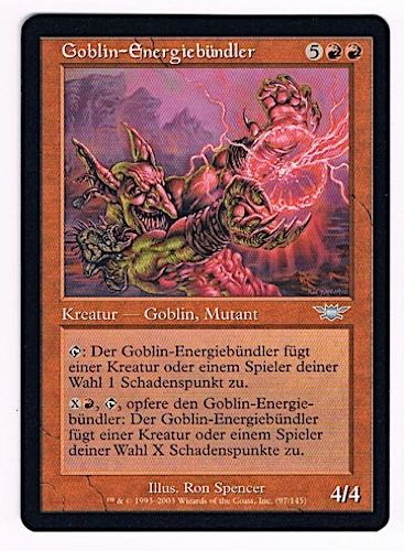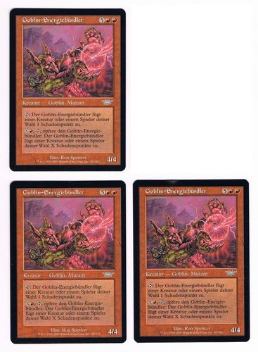 3x "Goblin-Energiebündler", Uncommon aus "Legionen", Erhaltung siehe Text