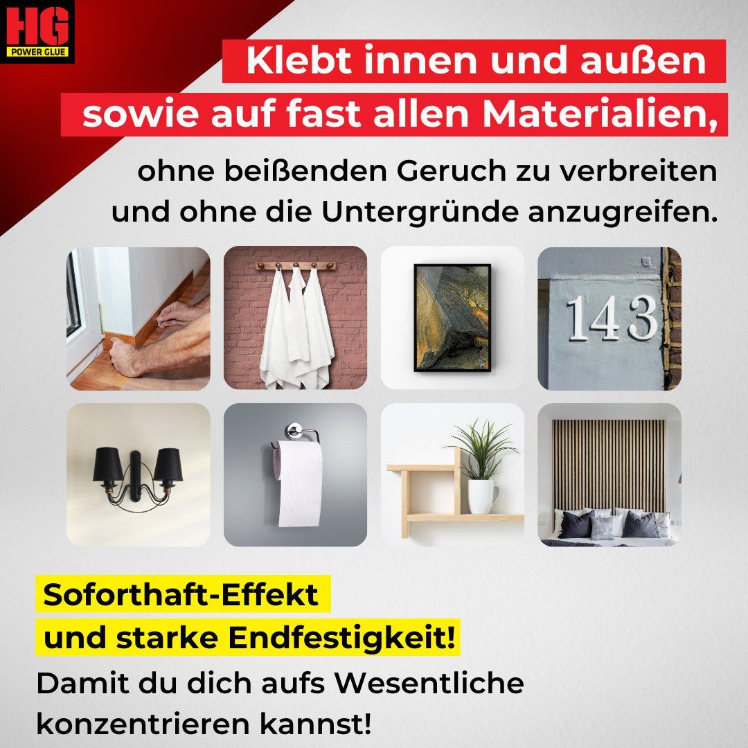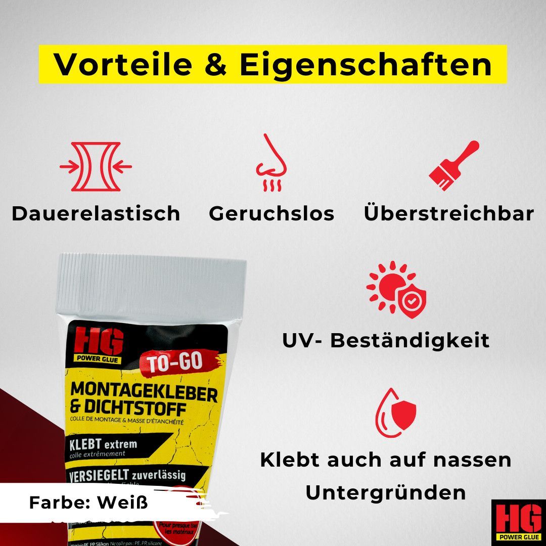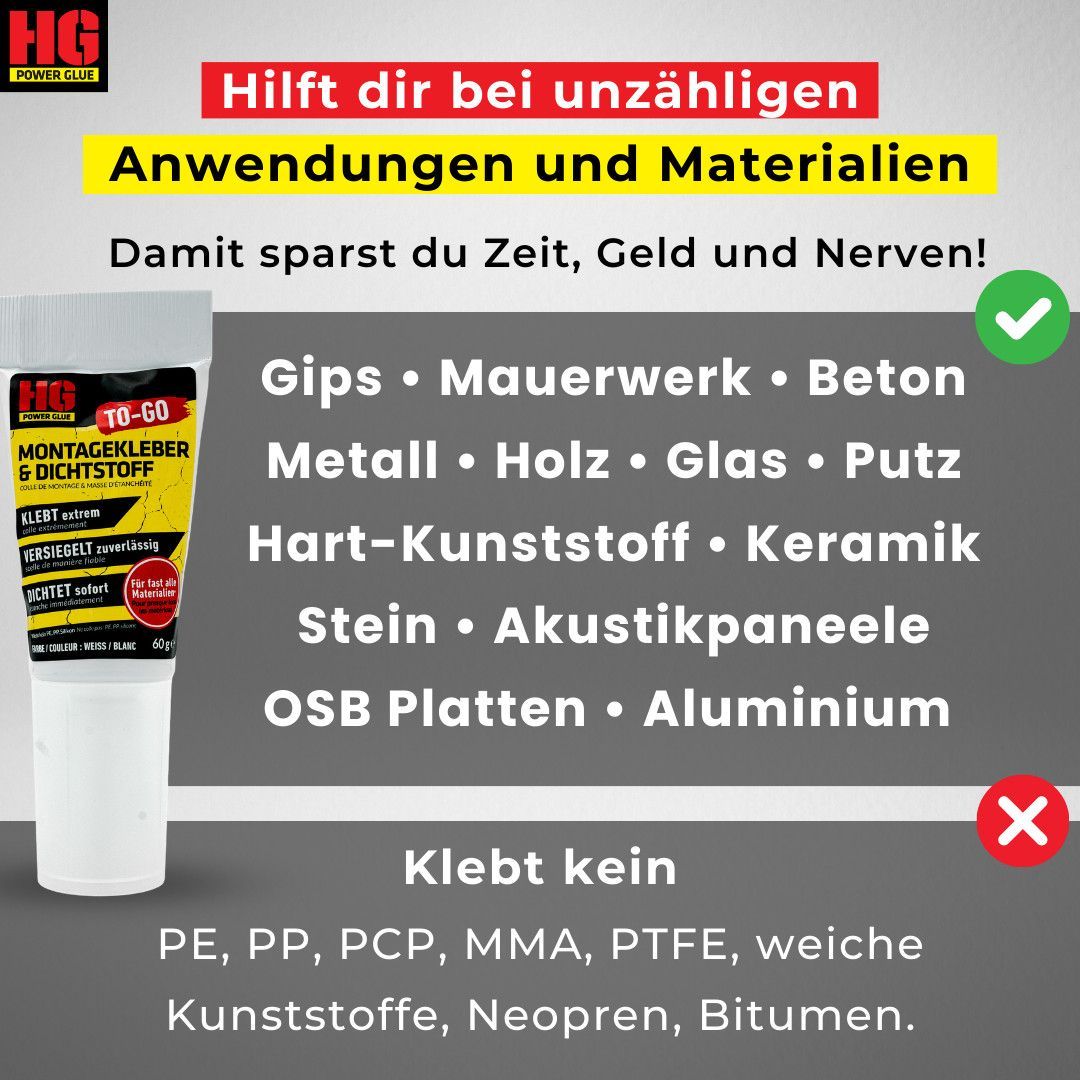 3x HG Power Glue Motage-Kleber TO GO 60g (3 Tuben á 60g)