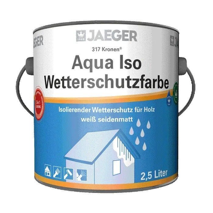 3x Jaeger 317 Aqua Iso-Wetterschutzfarbe 0,75 Liter weiß Details für 3x 317 Aqua Iso-Wetterschutzfarbe 0,75 Liter weiß: Deckende wasserverdünnbare Absperrfarbe gegen Holzinhaltsstoffe. Aqua Iso Wetterschutzfarbe ist die ideale Beschichtung für Dachuntersichten, Holzverblendungen, Fachwerk und sonsti