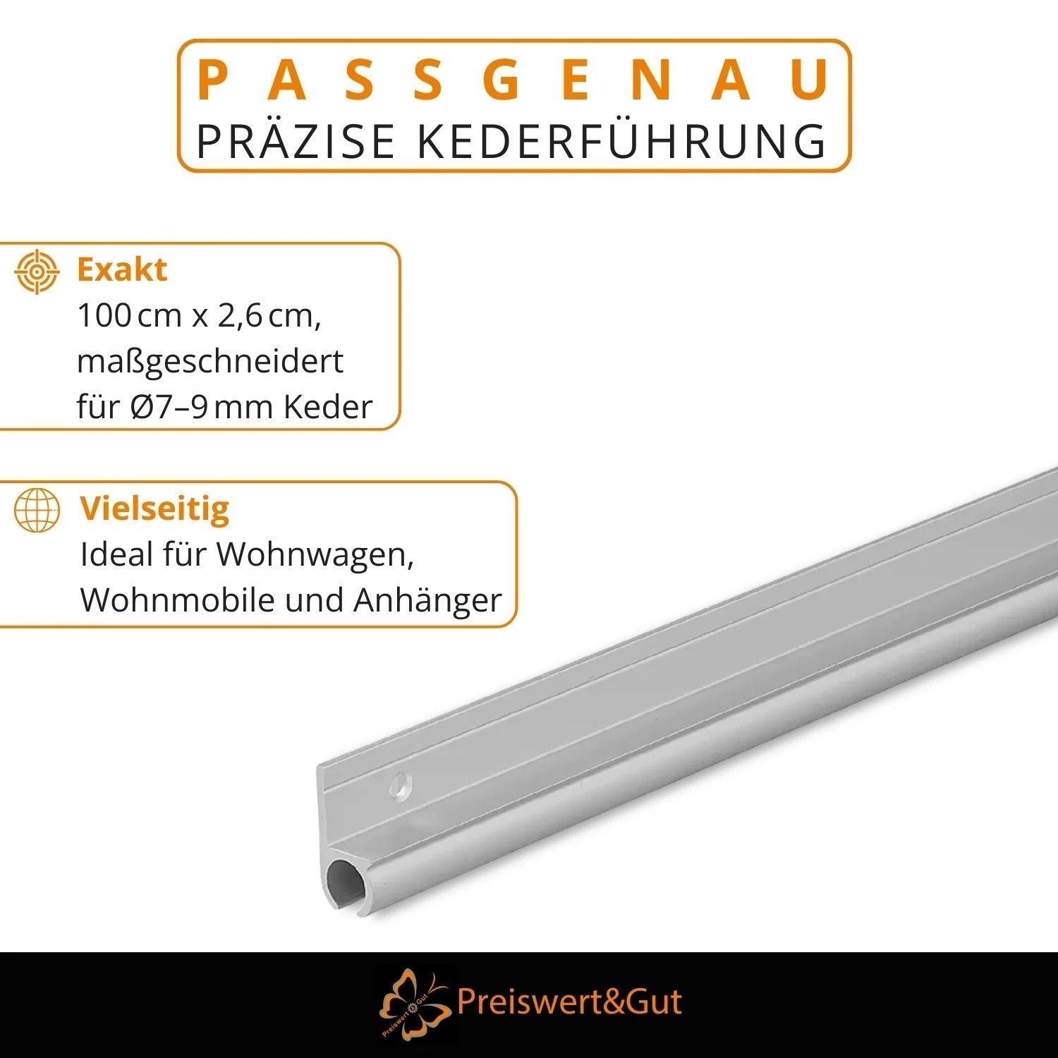 3x Kederschiene Wohnwagen 100 cm Aluminium Ø7-9 mm - Kederleiste Set