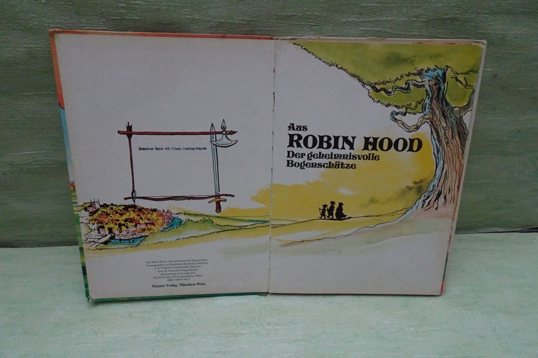 Jugend- & Kinderbücher ... Erinnerungen ..... 3 Bilderbücher Aus Robin Hood : Der geheimnisvolle Bogenschütze Hänsel und Gretel Der gestiefelte Kater Herausgegeben von Kinderland Buchpaket , München (C) 1979 Meister Verlag GmbH , München Text : M. Faulmüller Ingrid Emond Illustrationen Einar Lag