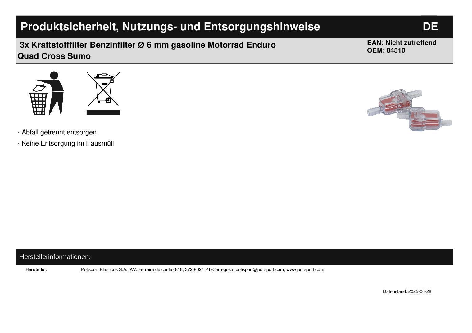 3x Kraftstofffilter Benzinfilter & 216; 6 mm gasoline Motorrad Enduro Quad Cross Sumo In dieser Auktion gibt es folgenden Artikel zu kaufen: Benzinfilter (ähnlich Foto, jedoch 3 Stück) Modell: universal Details: Anschlussdurchmesser Ø 6 mm Lieferumfang: 3 Stück Artikelzustand: neu Hierbei han
