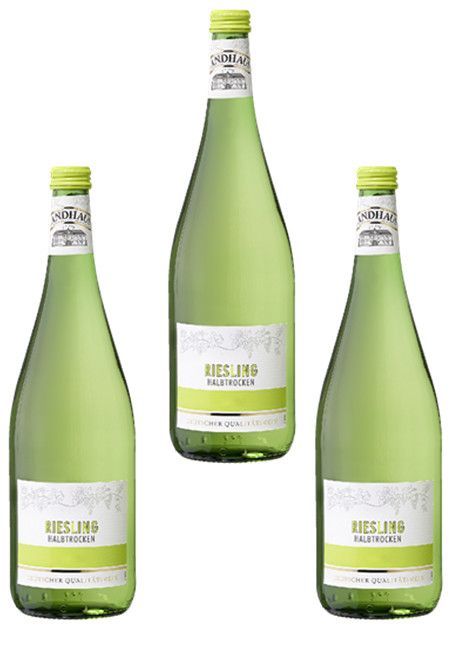 3x Landhaus Riesling Weißwein halbtrocken - 1 Liter klassischer Riesling