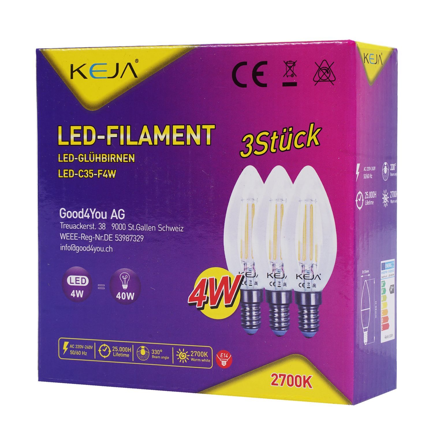 3x LED Filament Kerzen-Glühbirnen 4W / 40W