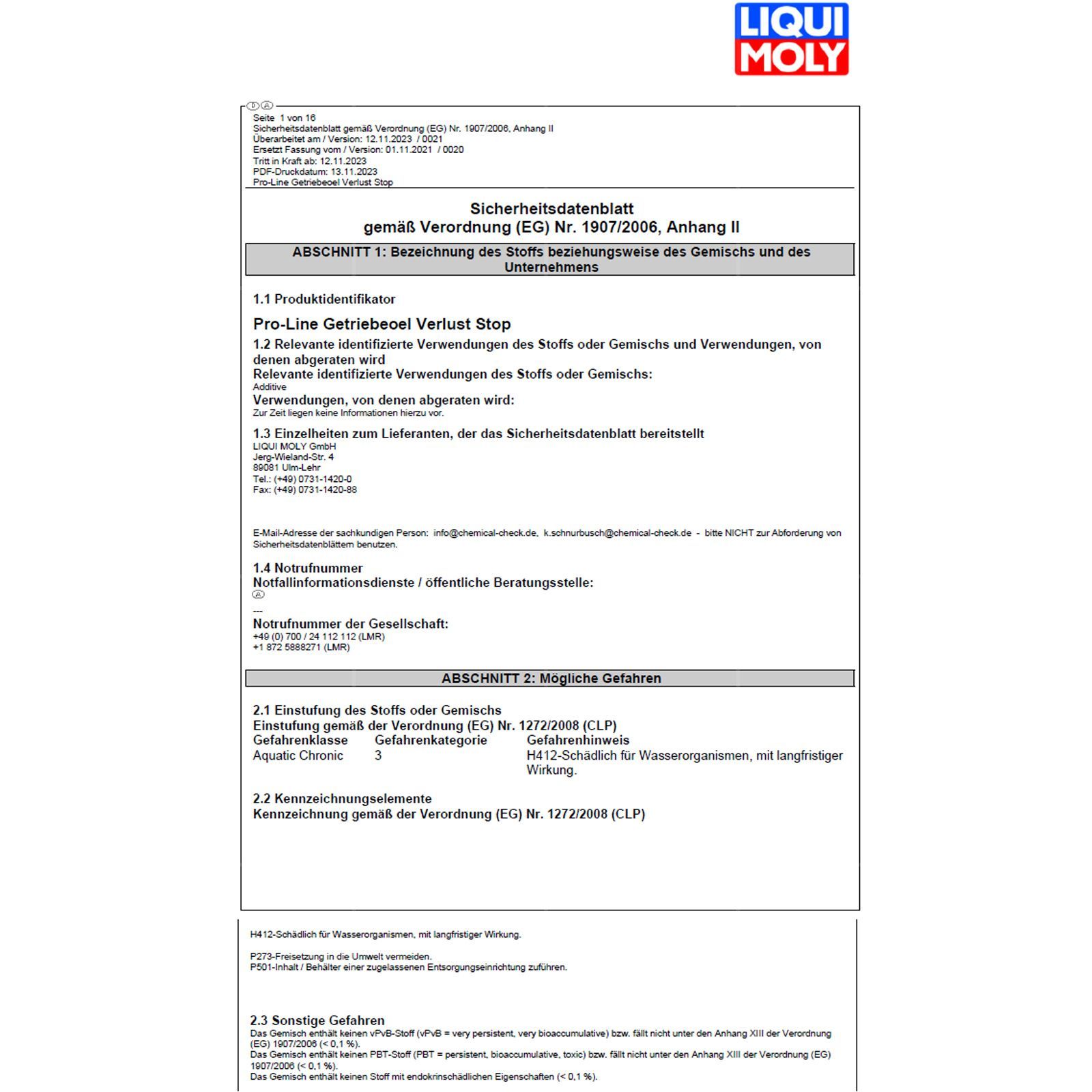 • Schädlich für Wasserorganismen, mit langfristiger Wirkung