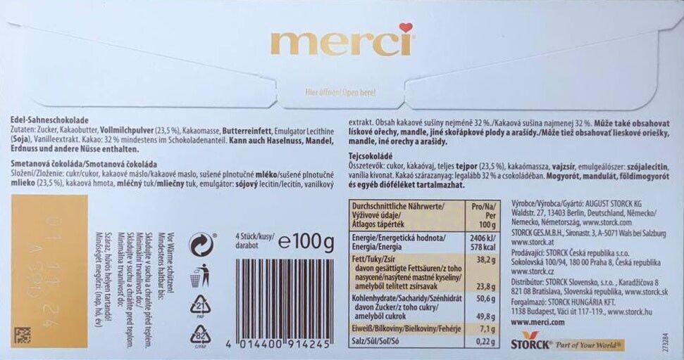 3x merci - 4 einzeln verpackte Mini-Tafeln Edel-Sahneschokolade 100g