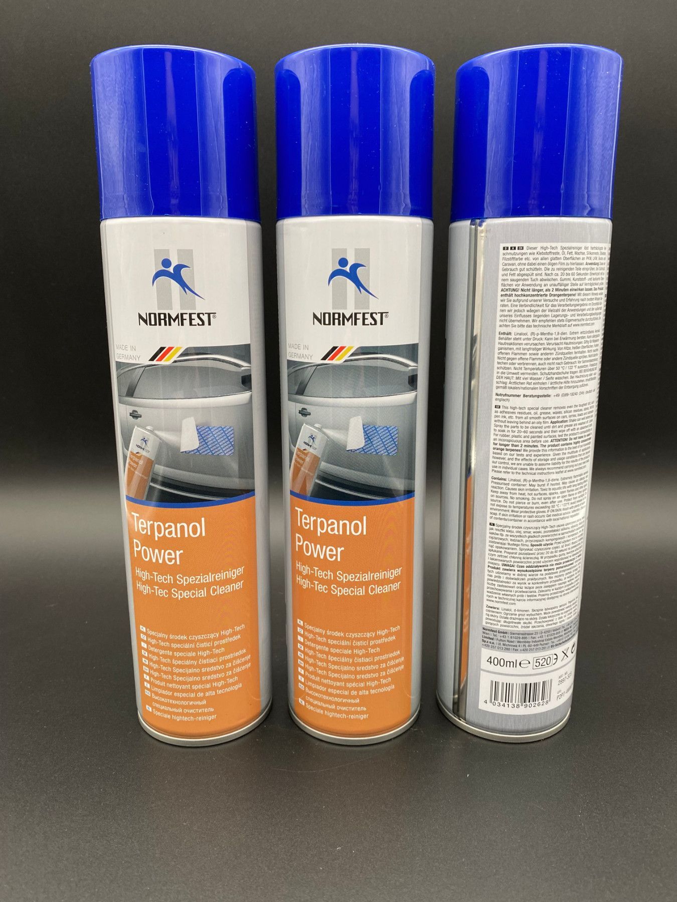 Normal 0 21 false false false DE X-NONE X-NONE MicrosoftInternetExplorer4 Normfest Terpanol High-Tech Spezialreiniger Lieferumfang: 3x 400 ml Spraydose Dieser High-Tech Spezialreiniger löst hartnäckigste Verschmutzungen wie Klebstoffreste, Öl, Fett, Wachse, Silikonreste, Etiketten, Filzstiftfarbe et