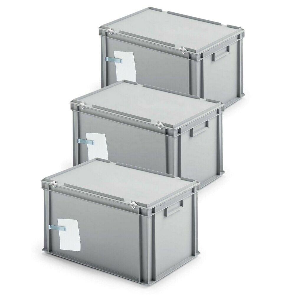 3x Ordner-Archivboxen inkl. Edelstahl-Zettelklemmer, staubsicher, grau