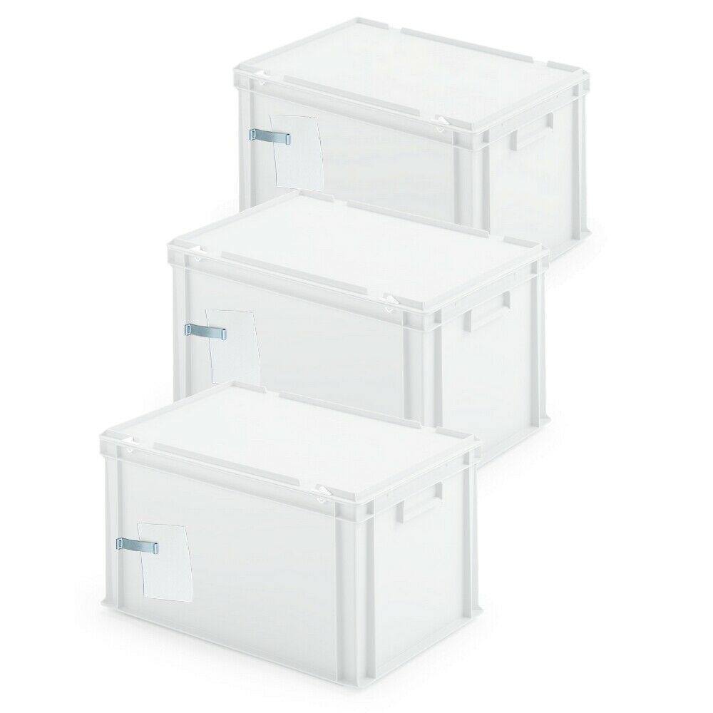 3x Ordner-Archivboxen inkl. Edelstahl-Zettelklemmer, staubsicher, weiß