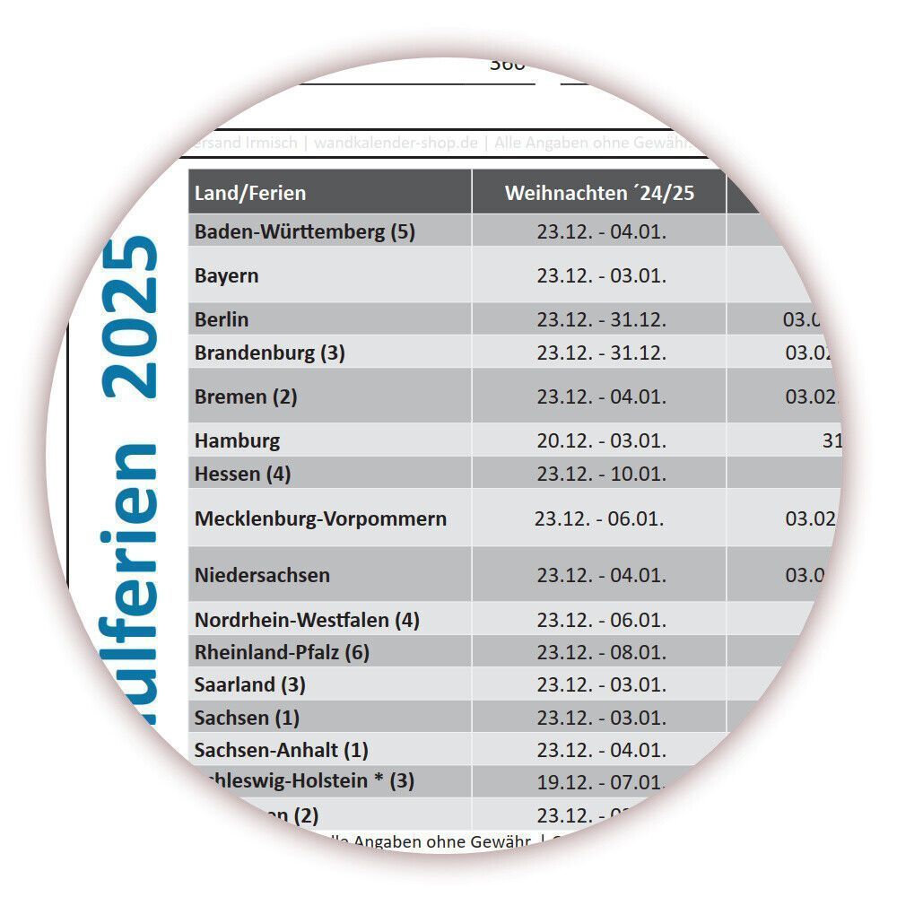 3x Rainbow Wandkalender DIN A1 2025 gerollt Wandplaner inkl. Ferien & Feiertage