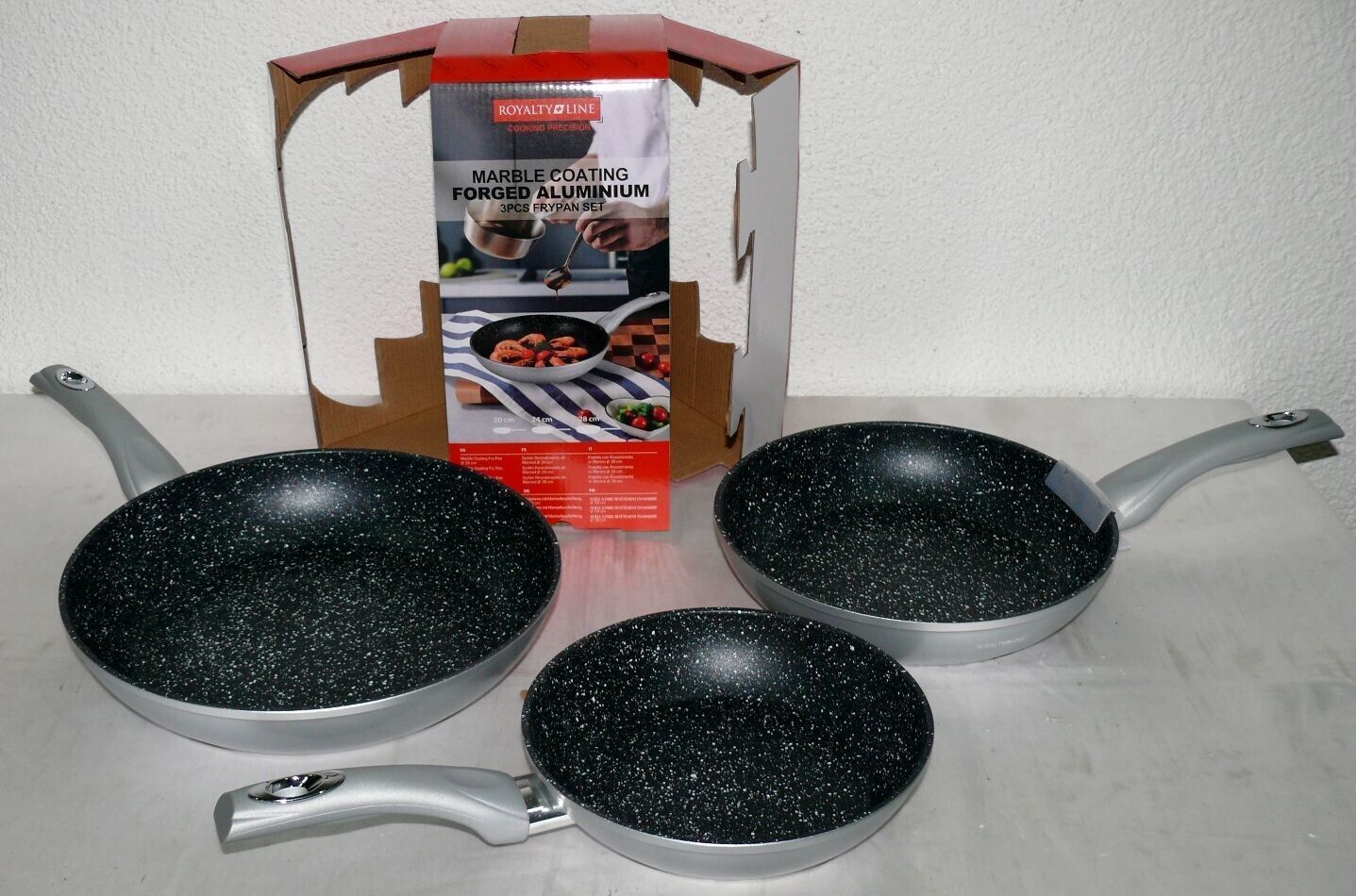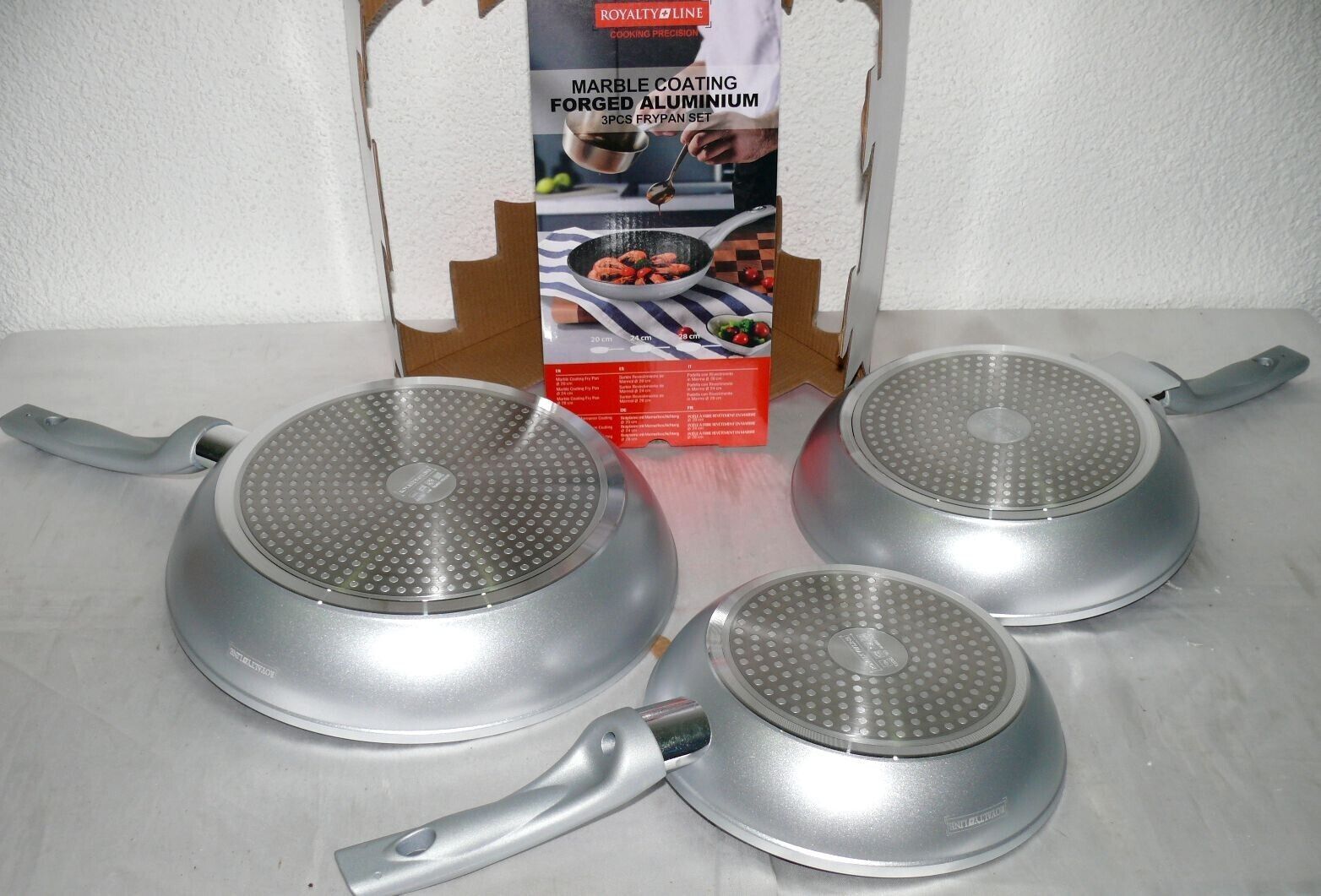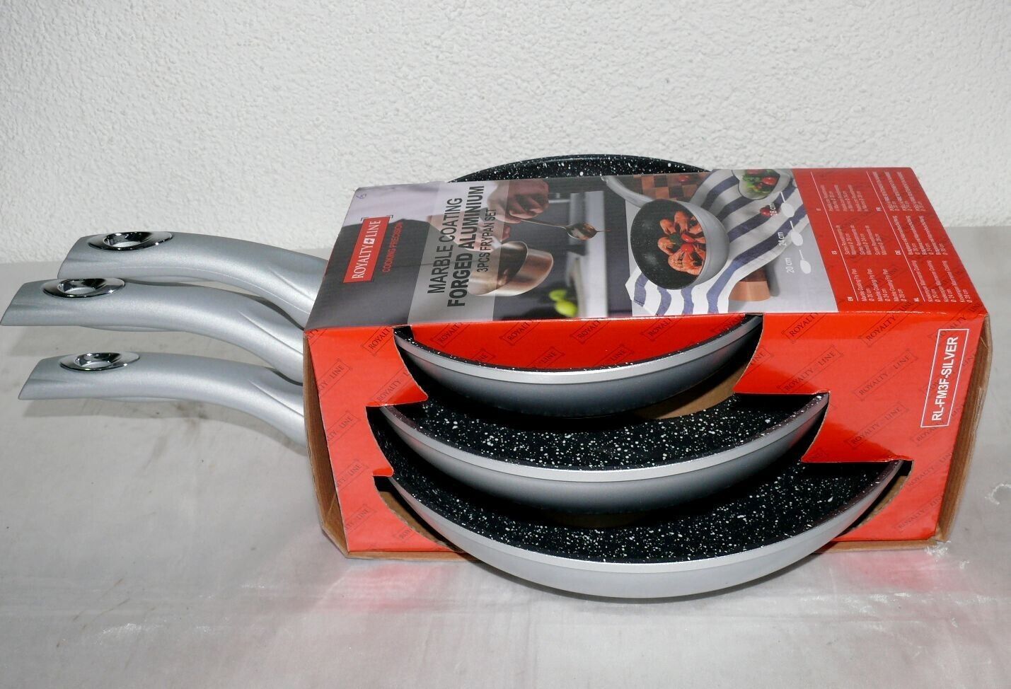 3x Royalty Ø 20 24 28 cm Brat Pfanne Marmorschicht ALU PTFE & PFOA Frei Silber