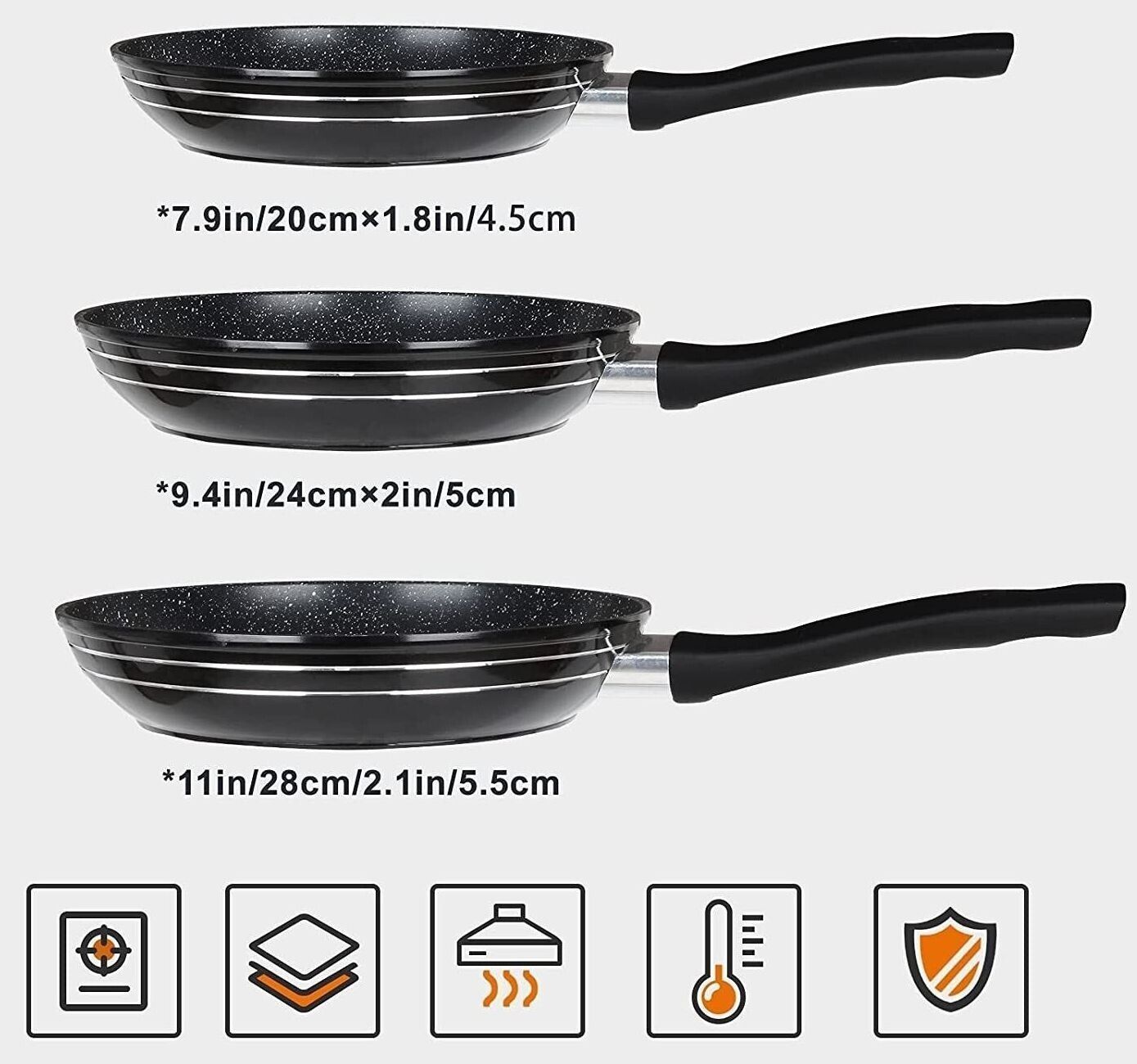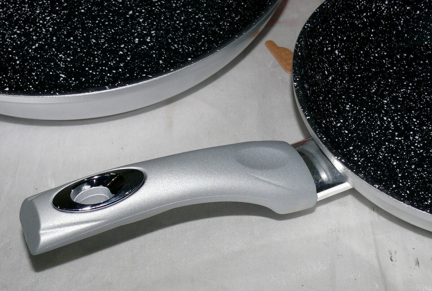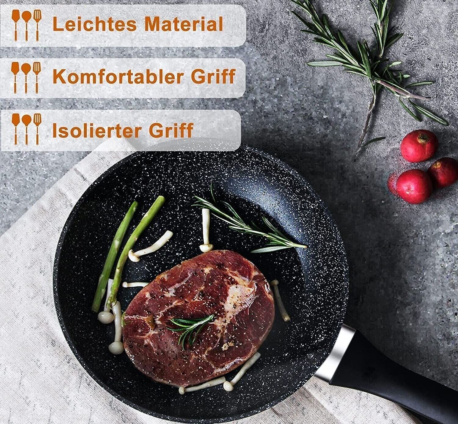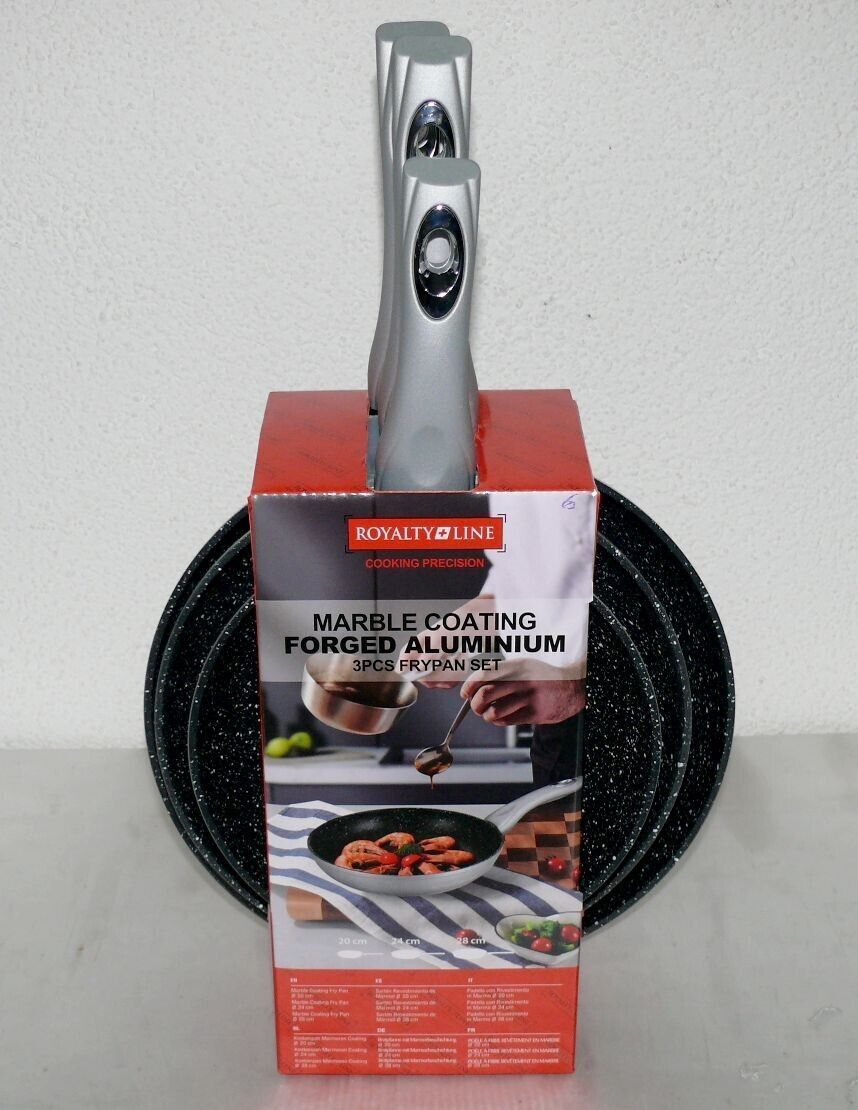 3x Royalty Ø 20 24 28 cm Brat Pfanne Marmorschicht ALU PTFE & PFOA Frei Silber
