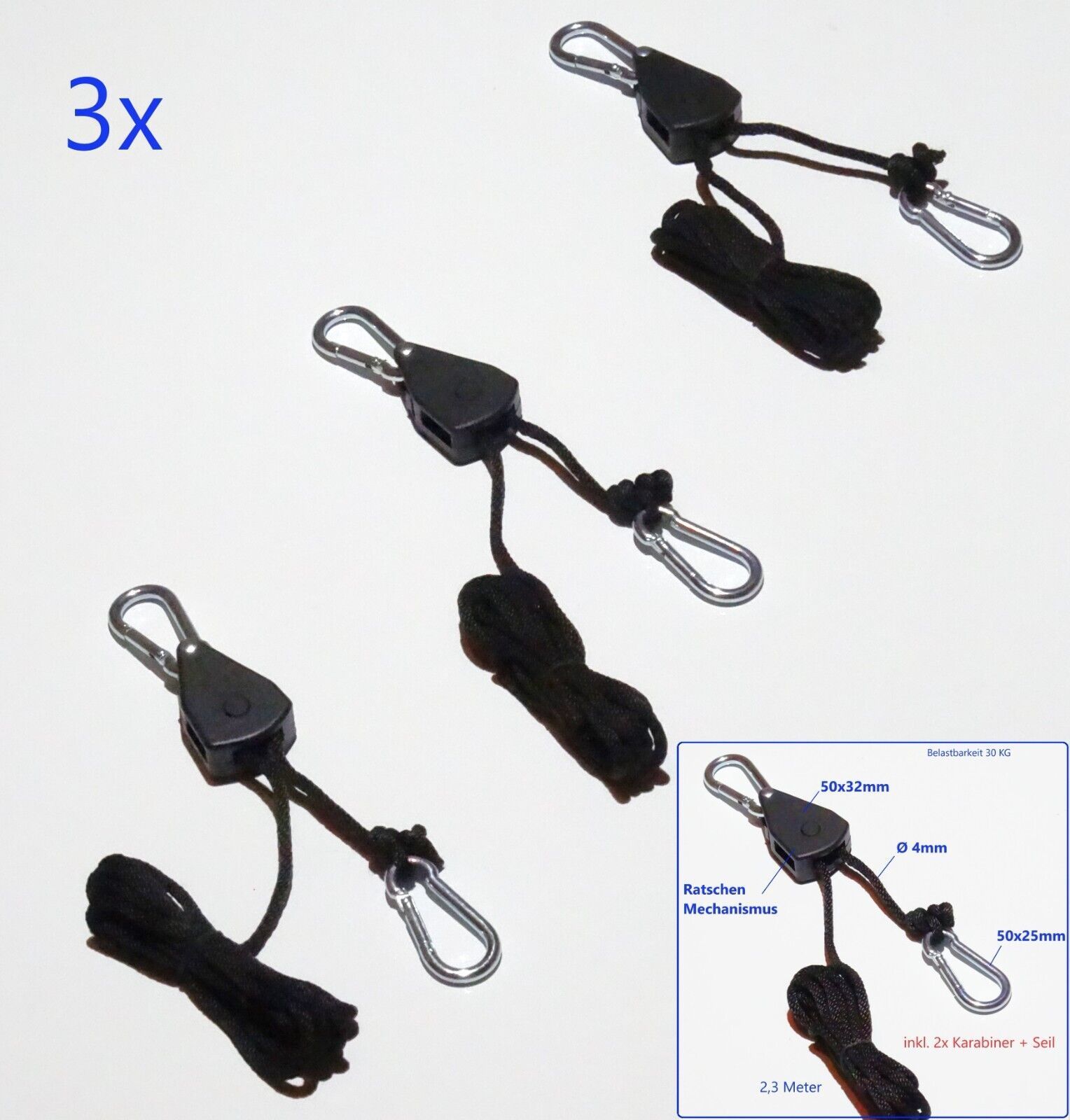 3x Seilratsche Ratschenzug Mechanismus Hebehilfe automatische Höhenfixierung