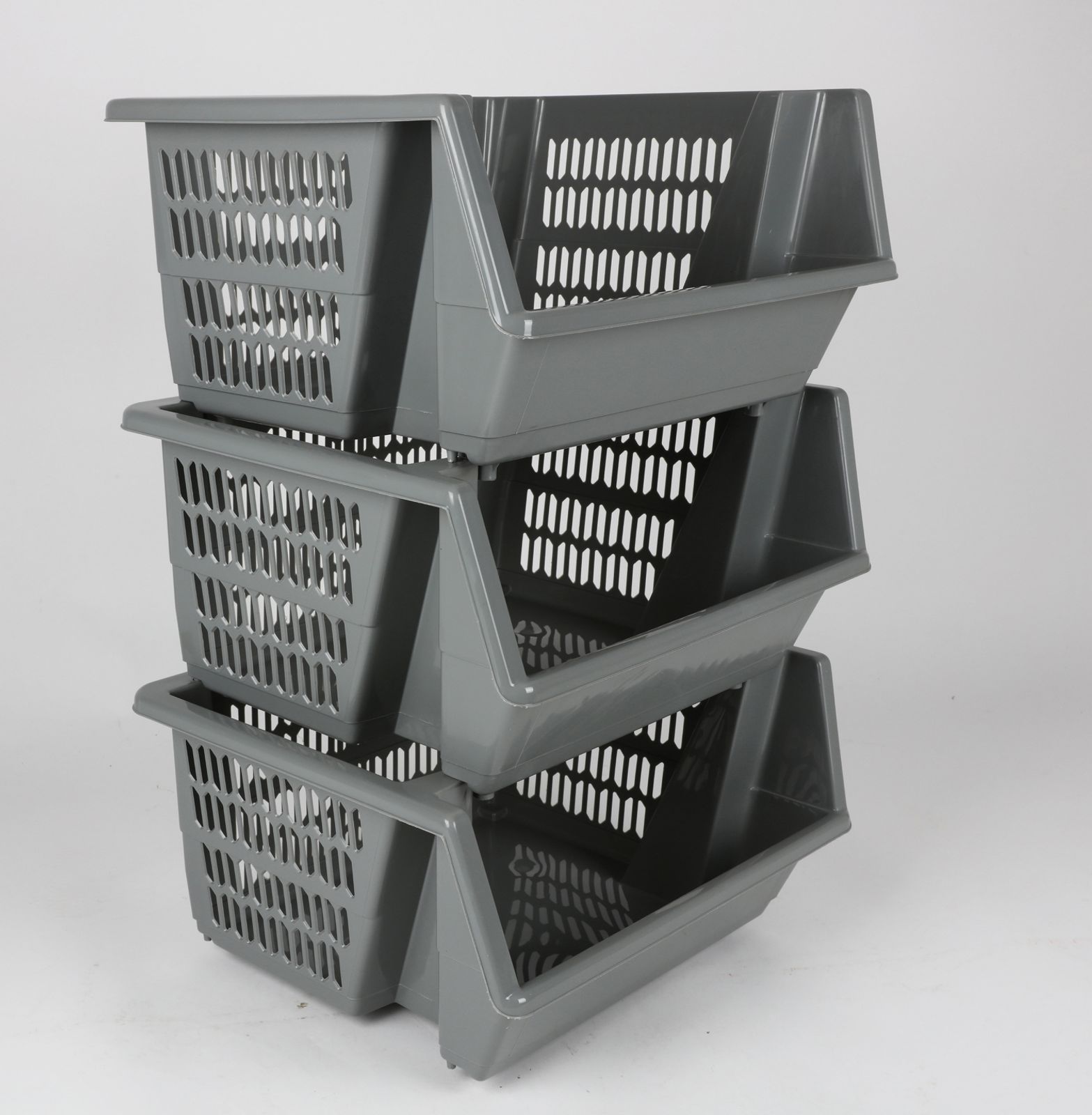 3x Stapelkörbe Küchenregal Haushaltskorb Aufbewahrung Erntekorb Gemüsekiste Korb