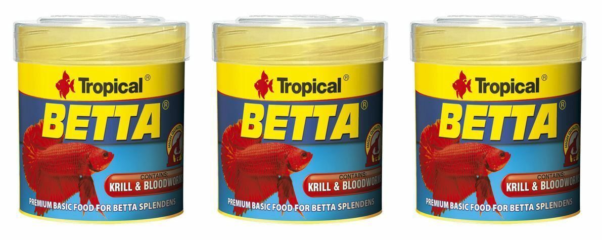 3x Tropical Betta 50ml - Fischfutter für Kampffische + Labyrinthfische Betta Futter