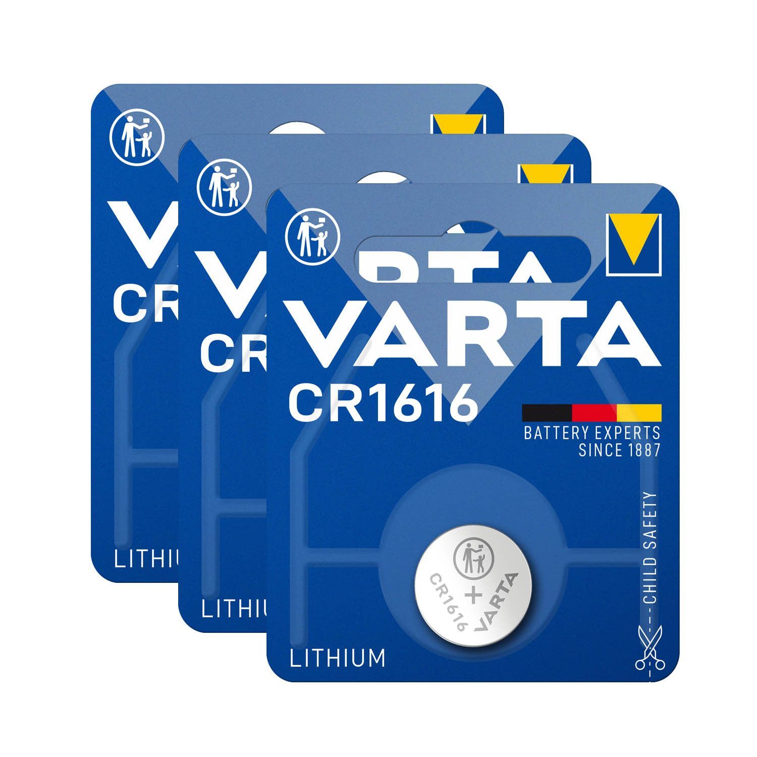Varta 3x Varta Knopfzelle Lithium CR1616 3V Batterie 1er Blister CR 1616