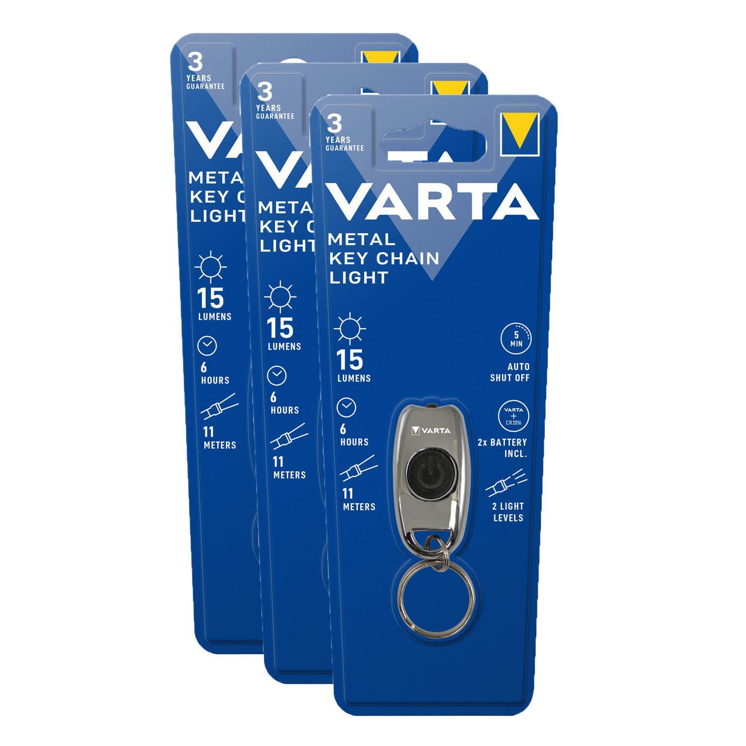 Varta 3x Varta LED Taschenlampe Metal Key Chain Light 15lm inkl. 2x Knopfzelle CR2016