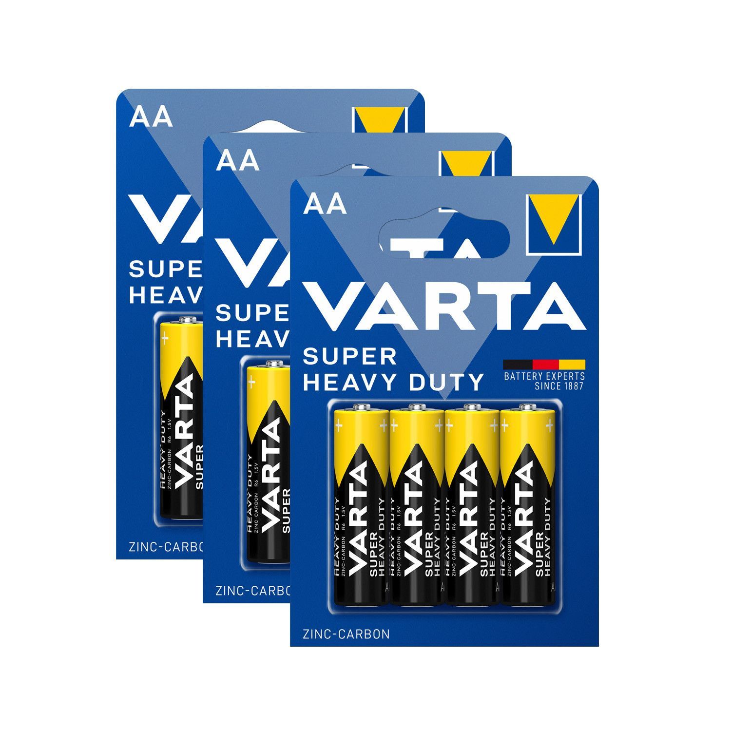 Varta 3x Varta SuperLife Mignon AA MN1500 LR6 1,5V Zink Kohle Batterie Super Heavy Duty