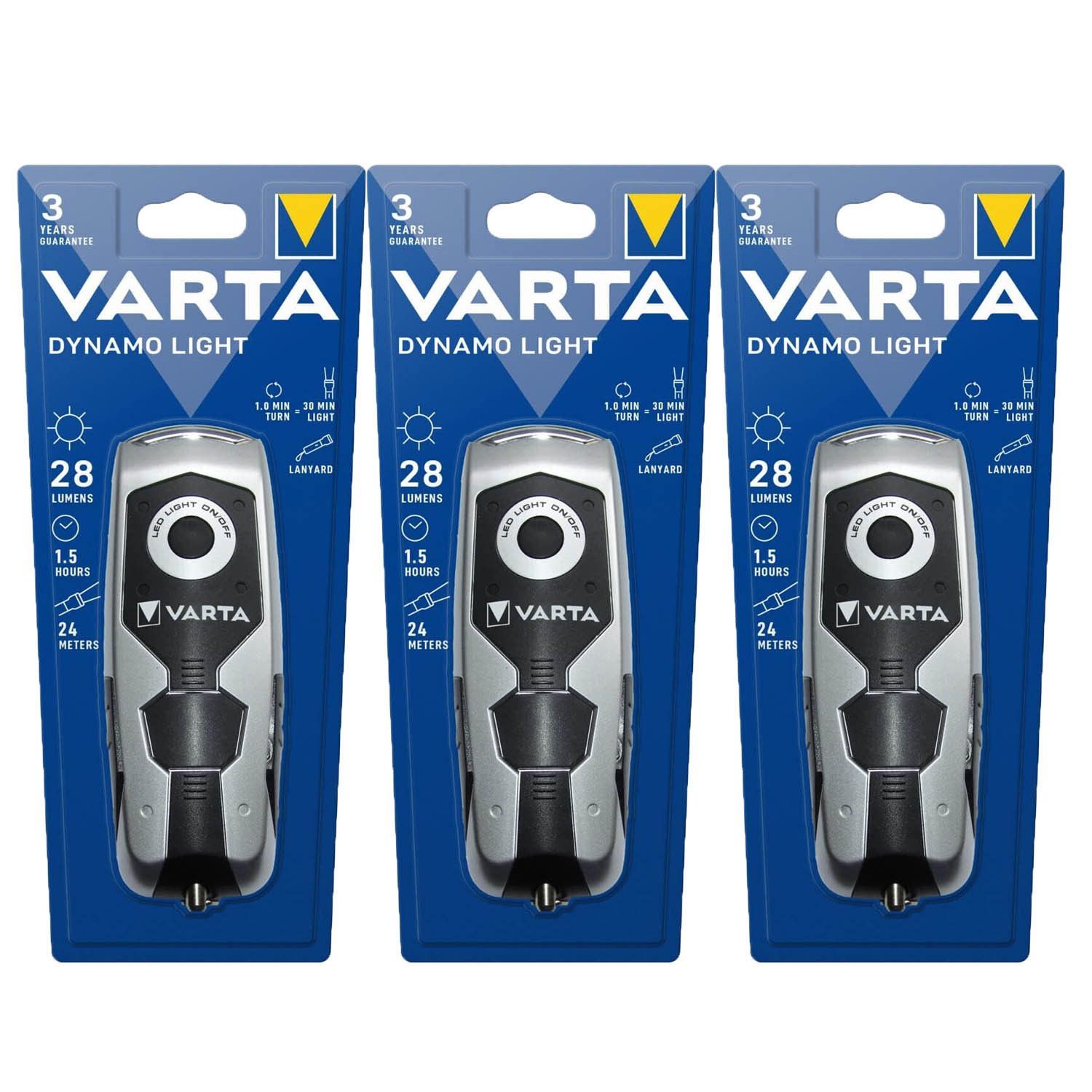 Varta 3x VARTA Taschenlampe Taschenlicht Flashligt Handlampe Handkurbel Dynamo Light LED